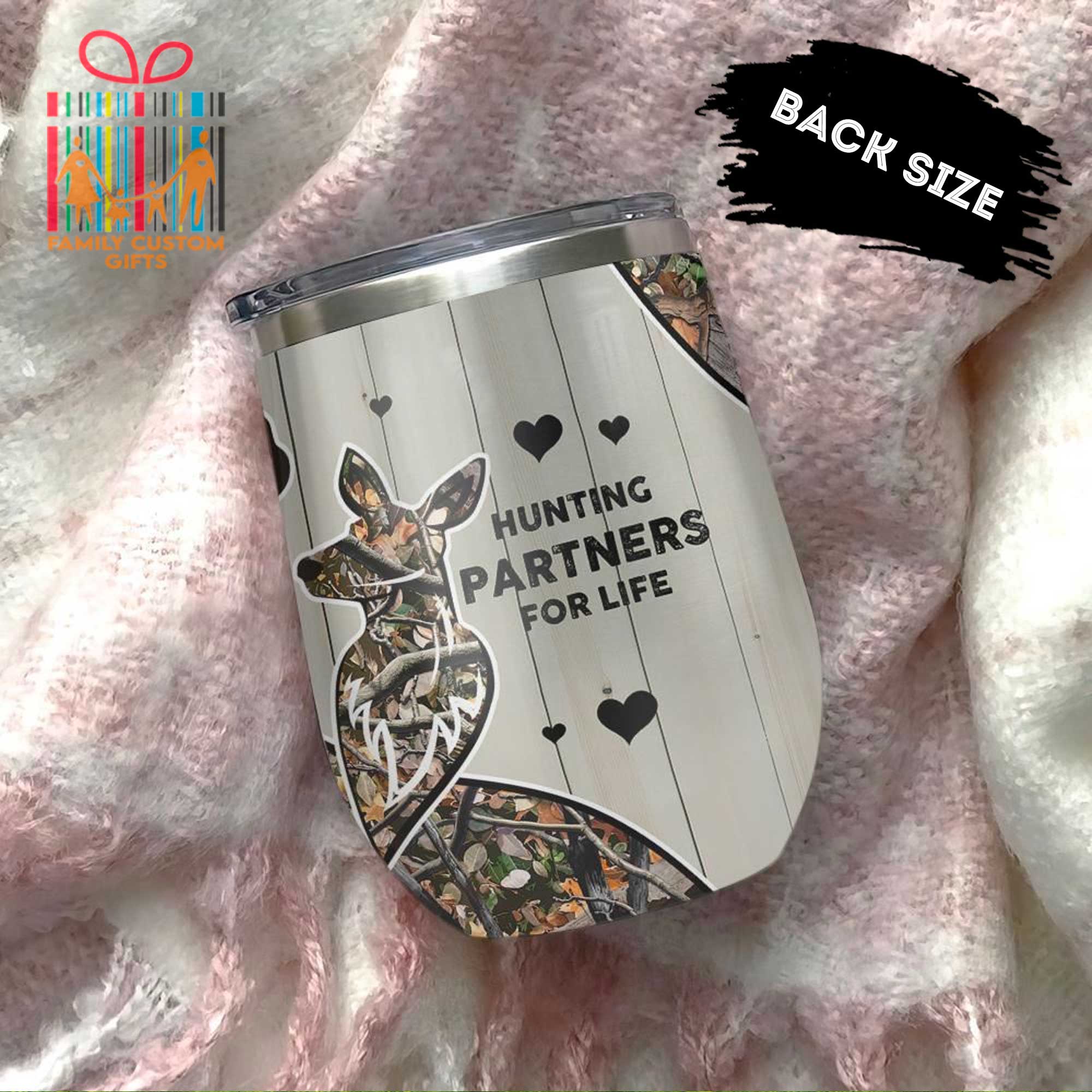 Deer Hunting Partner Couple Gift Custom Tumbler Cups For Her & Him Personalized Stainless Steel Wine Glasses