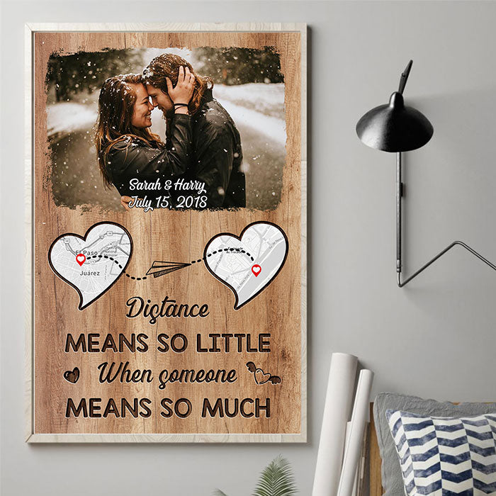 Distance Means So Little – Personalized Vertical Poster – Upload Image, Gift For Couples, Husband Wife