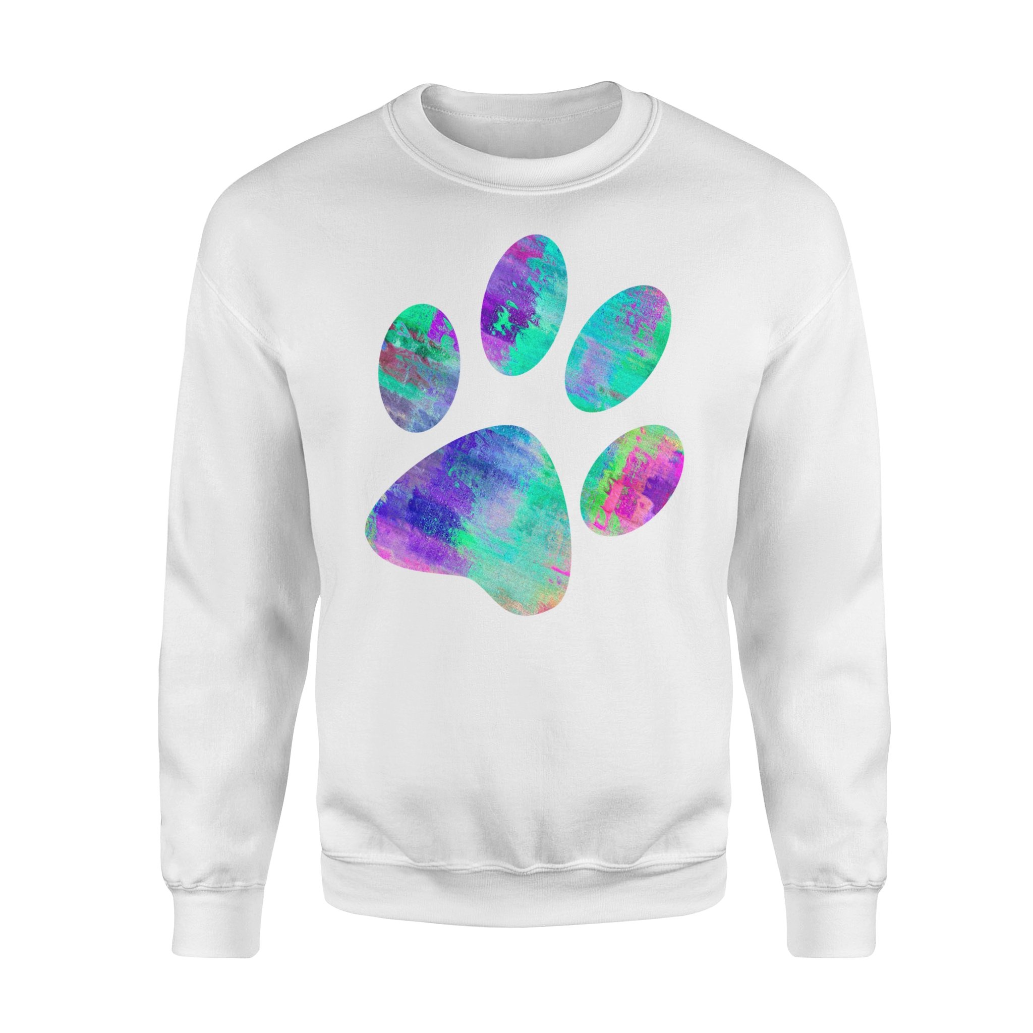 Dog gift idea Loves Dogs Cats Animals Paw Print Animal Lover Rainbow Art Pullover T-Shirt – Standard Fleece Sweatshirt