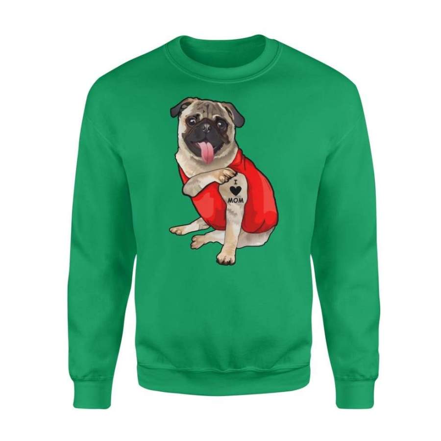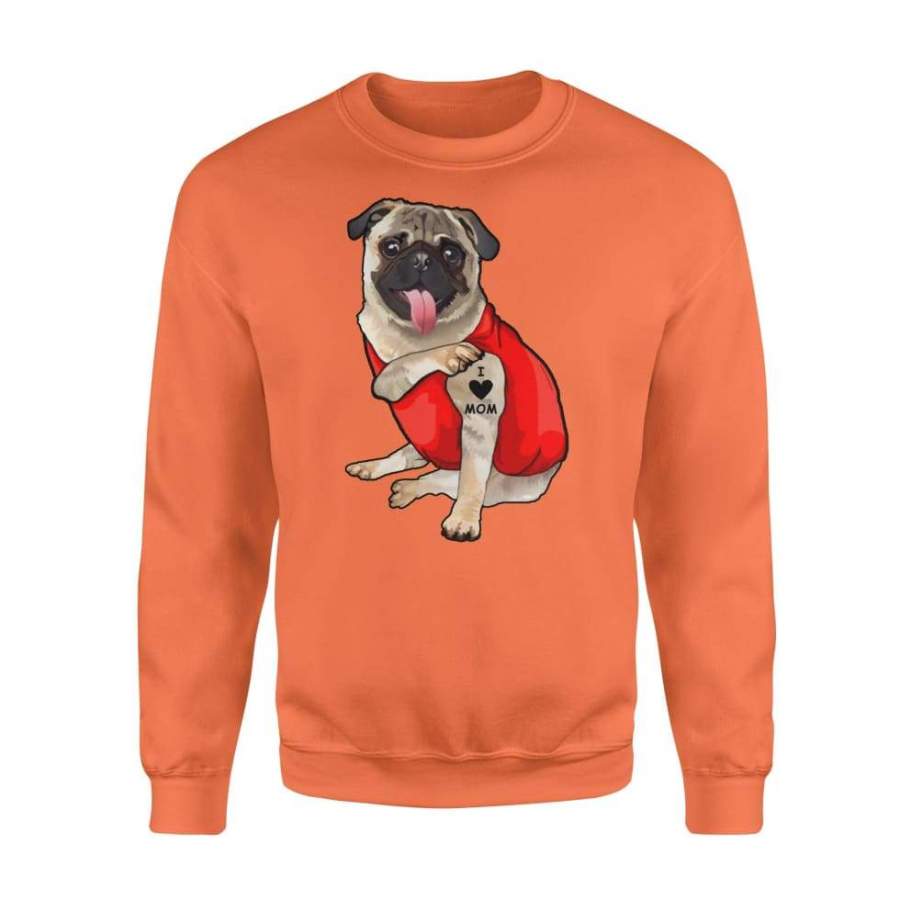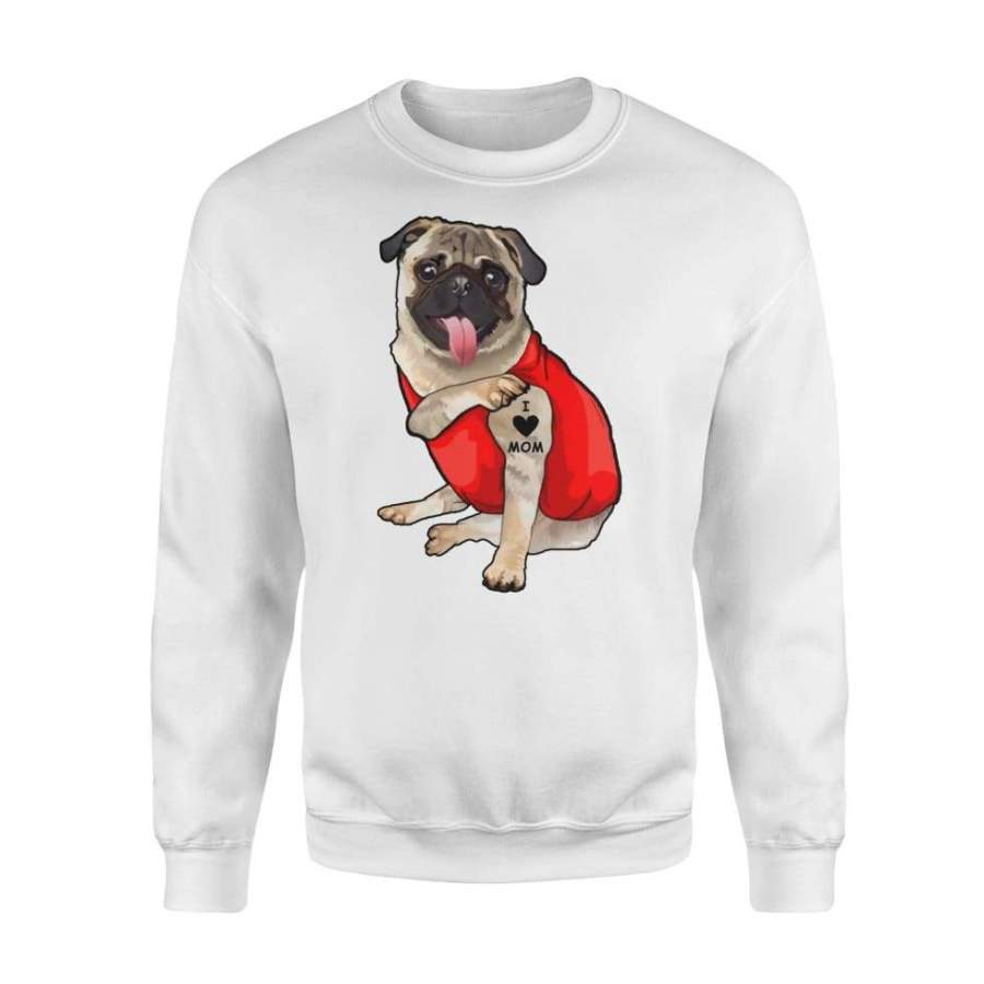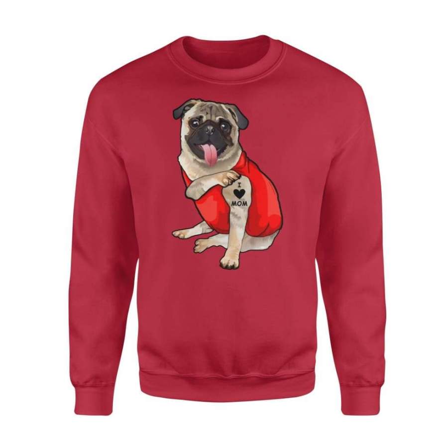 Dog Has Tattoo I Love Mom Pug – Standard Fleece Sweatshirt