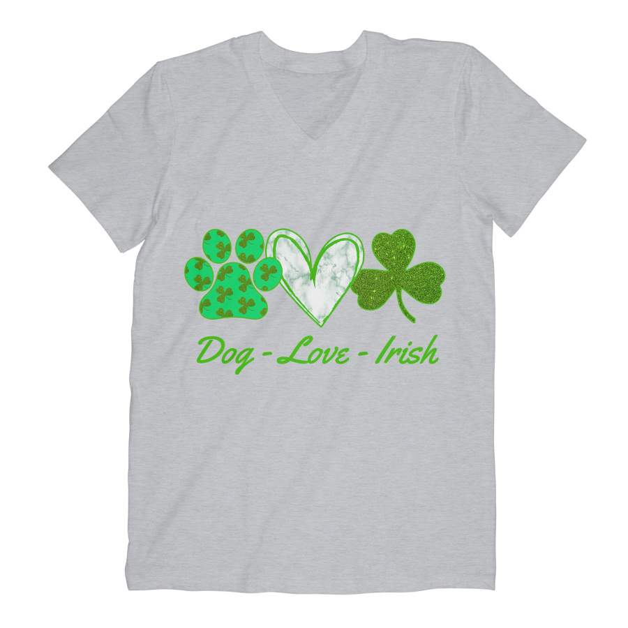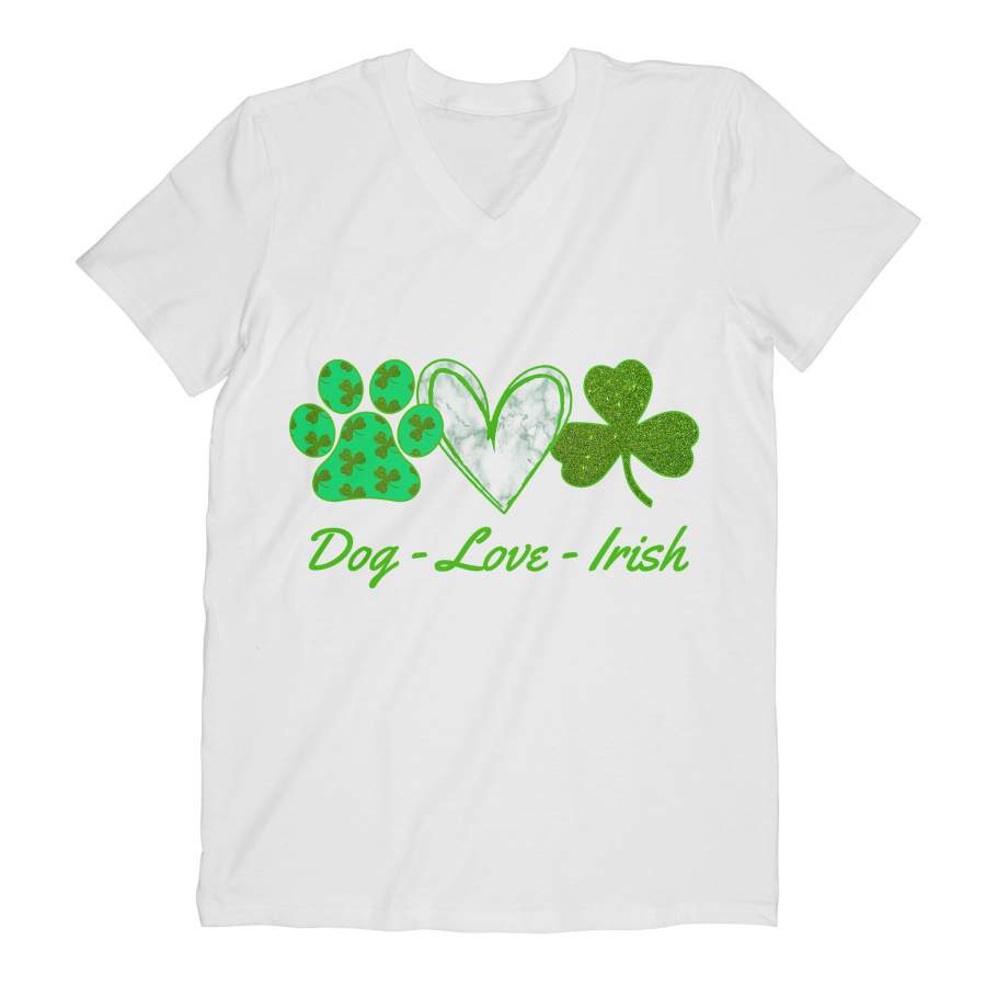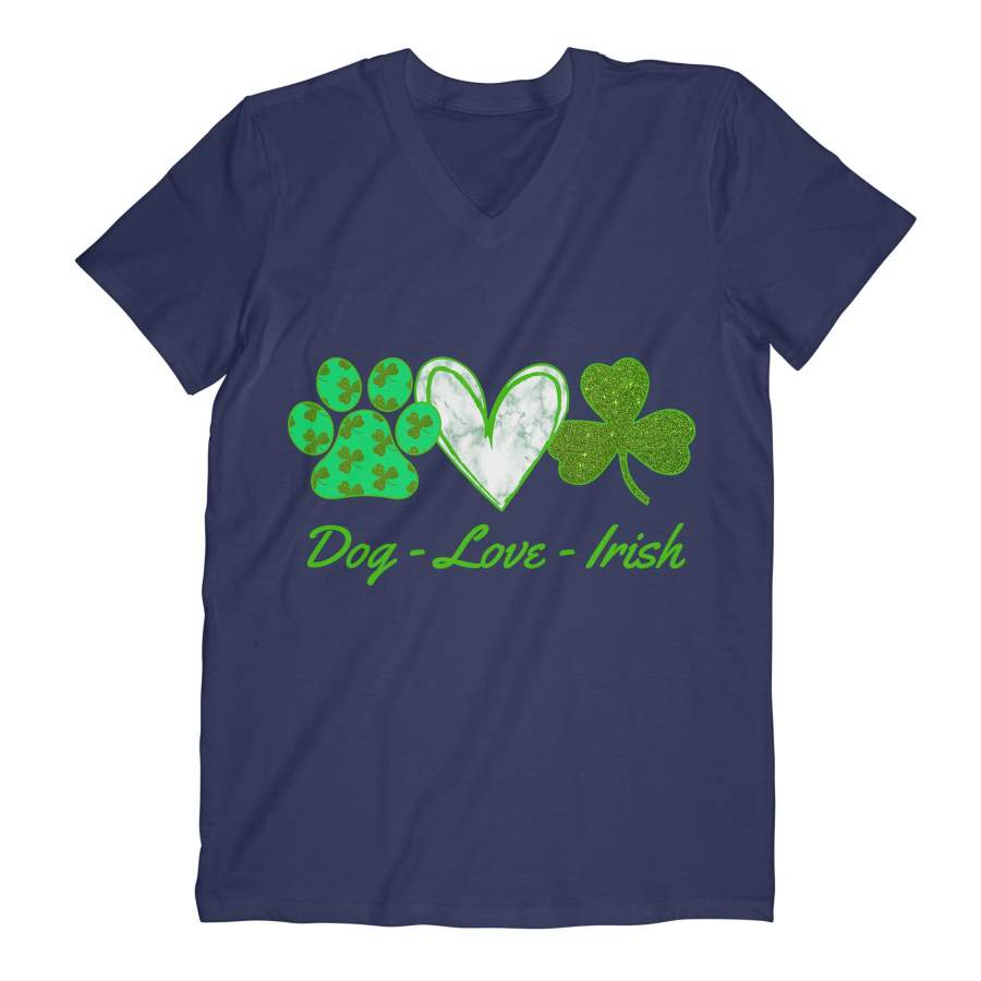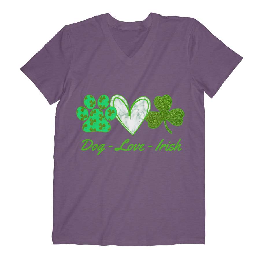 Dog-Love-Irish V-neck, Saint Patrick’s Day Cute Green Dog Paw, Heart And Shamrock Lucky Shirt