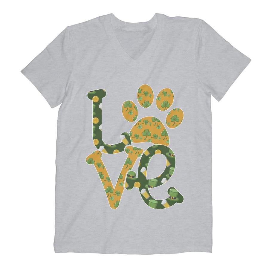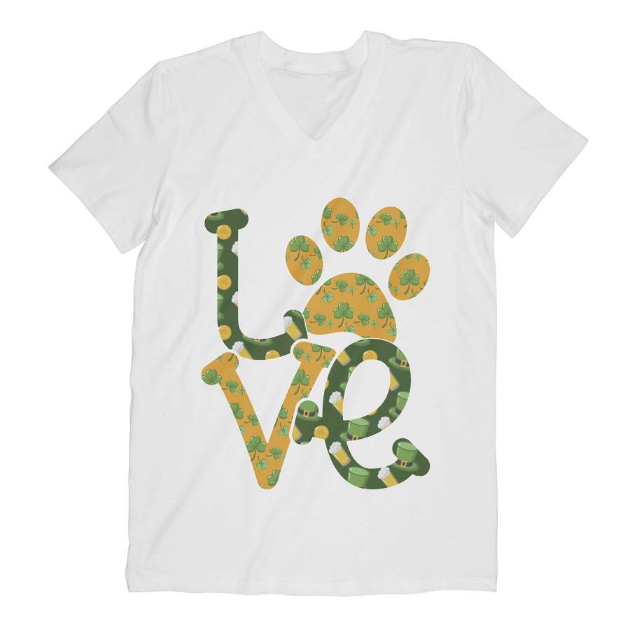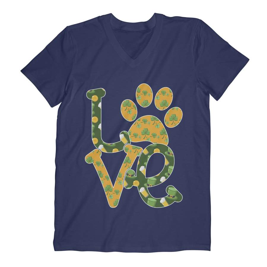 Dog Paw Love Shamrock Graphic St. Patrick’s Day V-neck