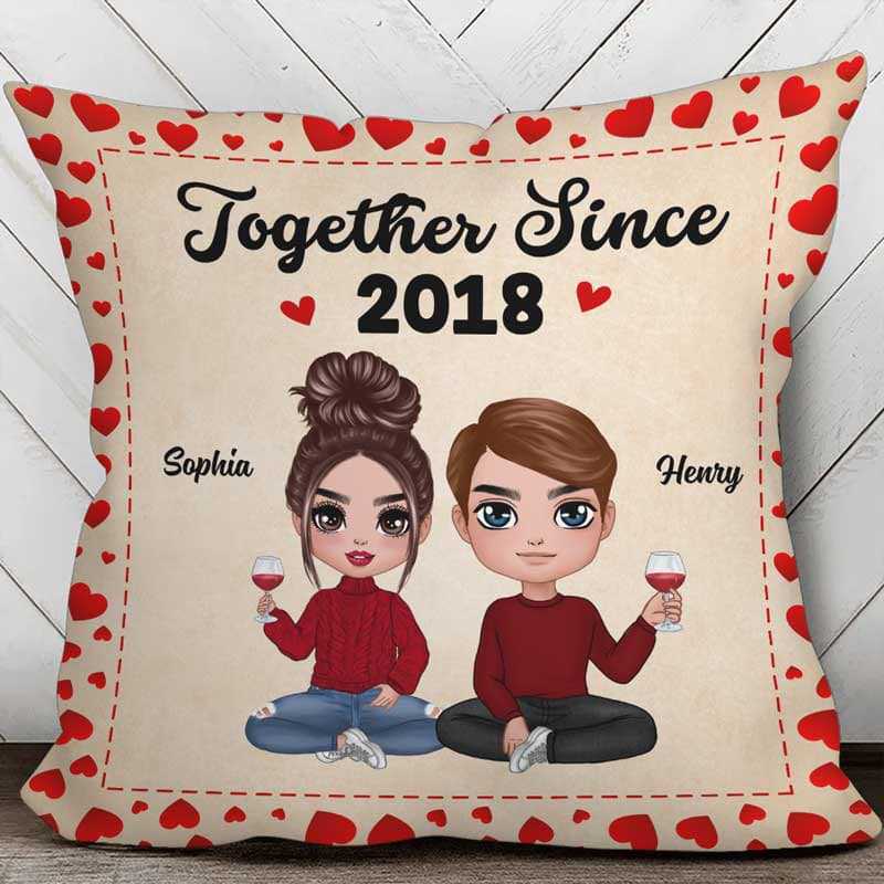 So whether you're looking to show off your own name or create a personalized gift for someone special, LateAndLow Store has got you covered. Start designing your own custom Doll Couple Sitting Heart Background Personalized Pillow (Insert Included) print-on-demand product today, and let us bring your vision to life!