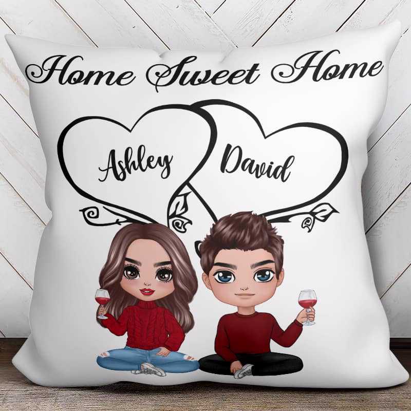 At Cotenis Store, we offer a fantastic range of print-on-demand products that can be personalized with your name. Our Doll Couple Sitting Home Sweet Home Valentine‘S Day Gift Personalized Pillow (Insert Included) print-on-demand products are the perfect way to add a personal touch to your wardrobe or to create a unique and thoughtful gift for someone special.