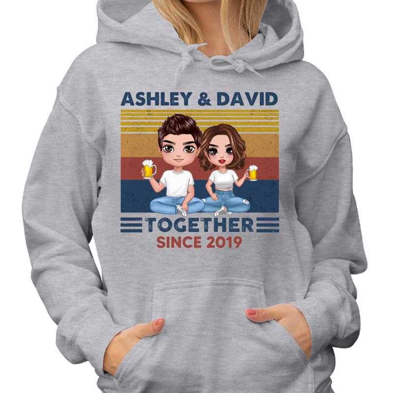 So whether you're looking to show off your own name or create a personalized gift for someone special, LateAndLow Store has got you covered. Start designing your own custom Doll Couple Together Since Retro Valentine‘S Day Gift For Her For Him Personalized Hoodie Sweatshirt print-on-demand product today, and let us bring your vision to life!