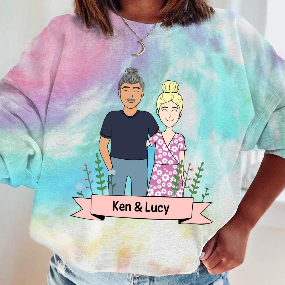 Doodle Couple Personalized Gift Tie Dye Shirt Sweatshirt Hoodie Ap625