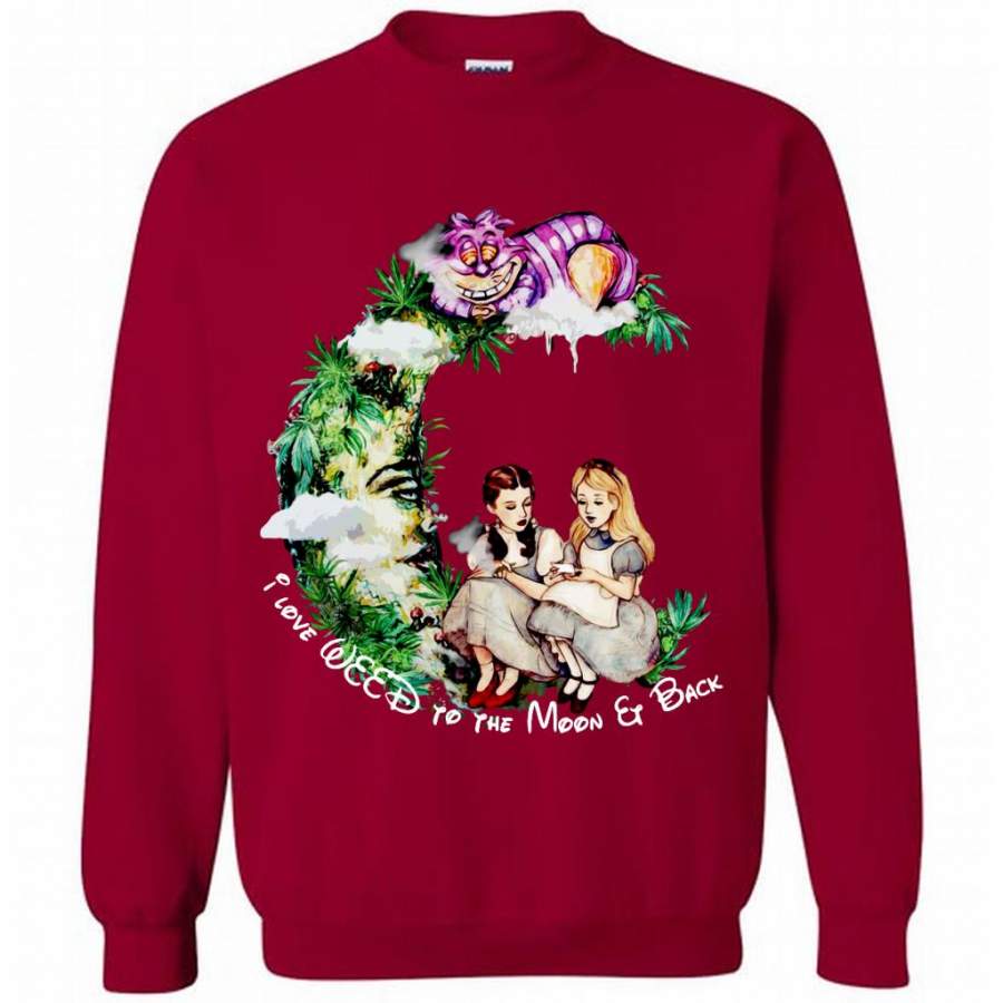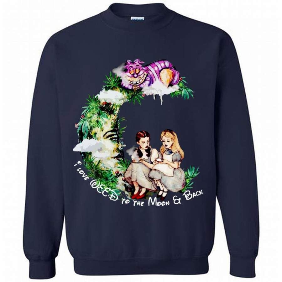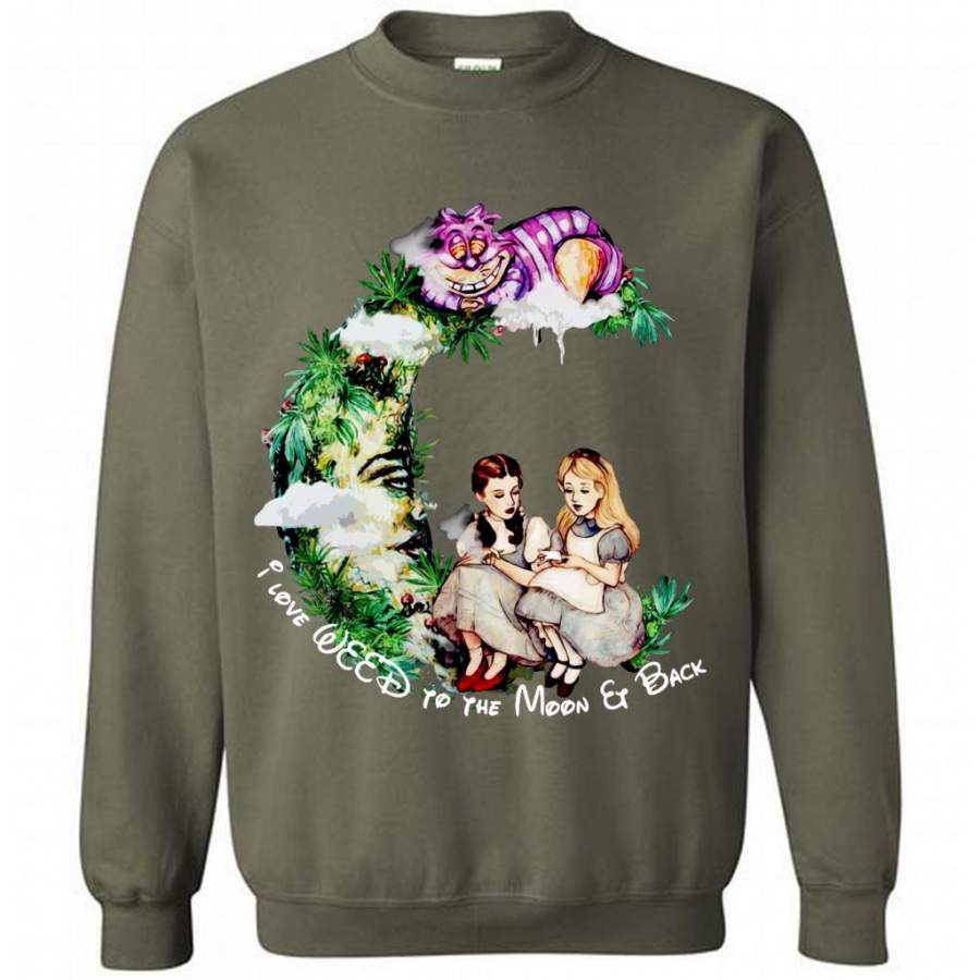Dorothy and Alice I Love Weed To The Moon And Back – Gildan Crewneck Sweatshirt