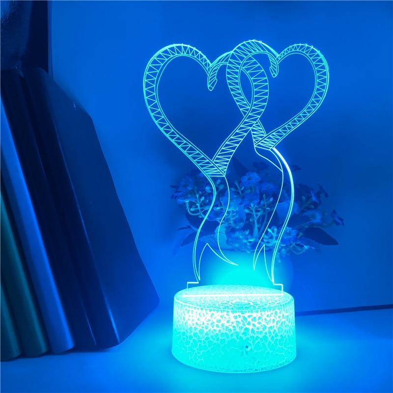 Double Love Outline Heart 3D Illusion Night Light Led Light