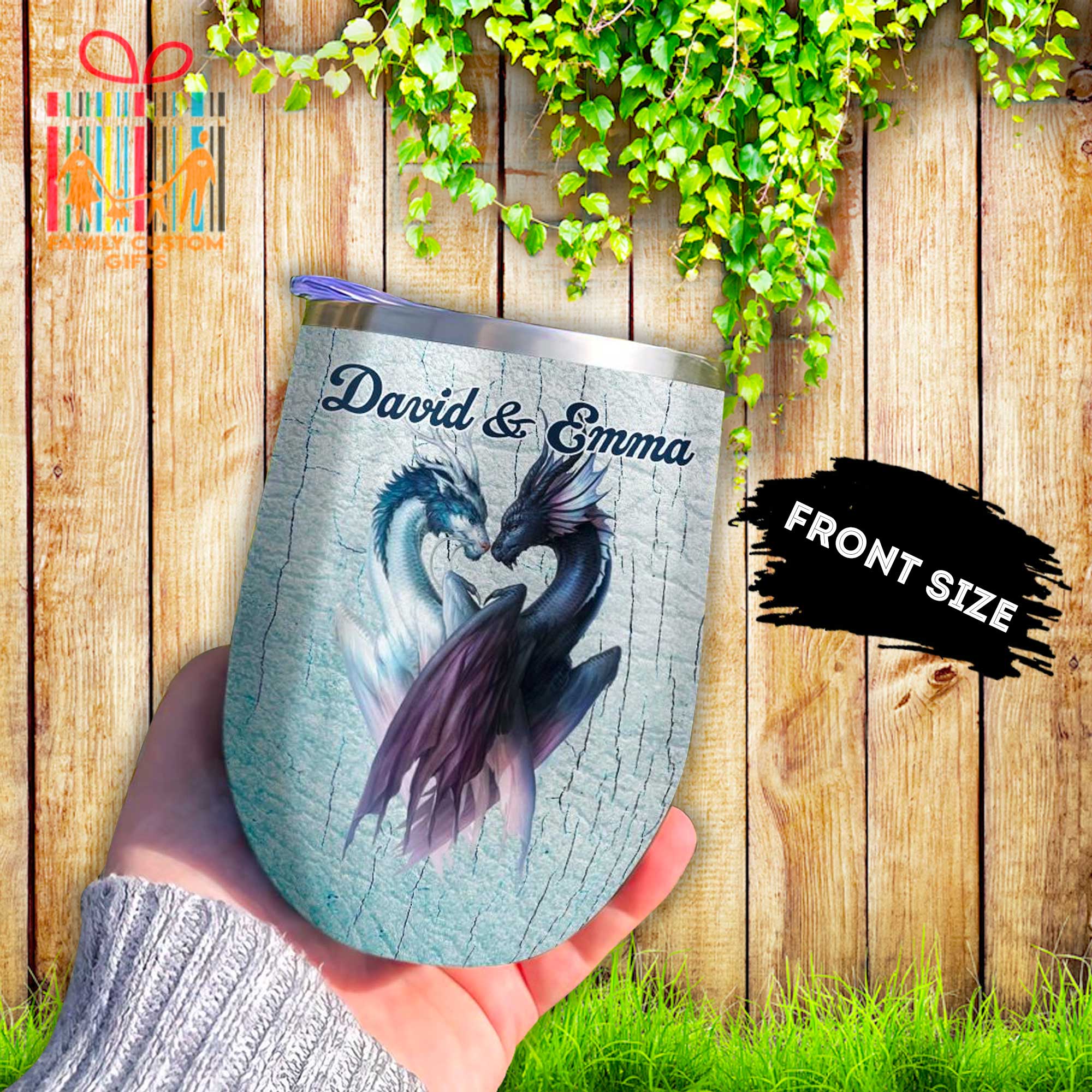 Dragon Couple Custom Tumbler Cups For Dragon Lovers Personalized Stainless Steel Wine Glasses – Gift For Her & Him