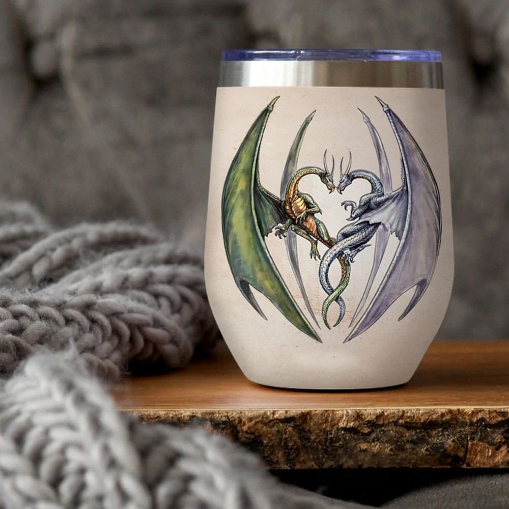 So whether you're looking to show off your own name or create a personalized gift for someone special, LateAndLow Store has got you covered. Start designing your own custom Dragon Couple Vintage Wine Tumbler print-on-demand product today, and let us bring your vision to life!