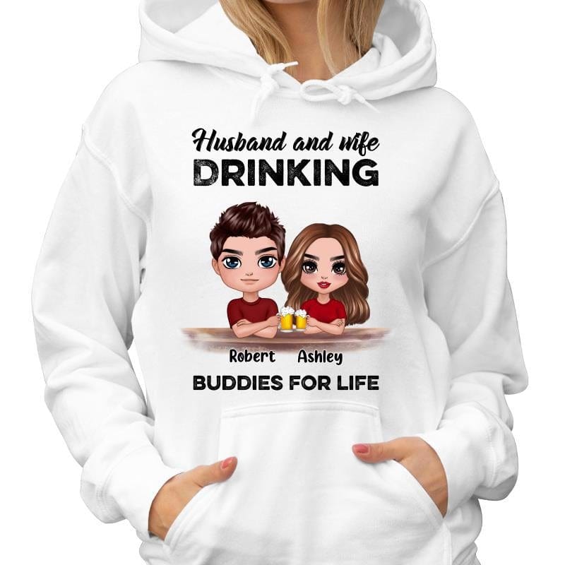 So whether you're looking to show off your own name or create a personalized gift for someone special, LateAndLow Store has got you covered. Start designing your own custom Drinking Buddies For Life Doll Couple Valentine‘S Day Gift Personalized Hoodie Sweatshirt print-on-demand product today, and let us bring your vision to life!