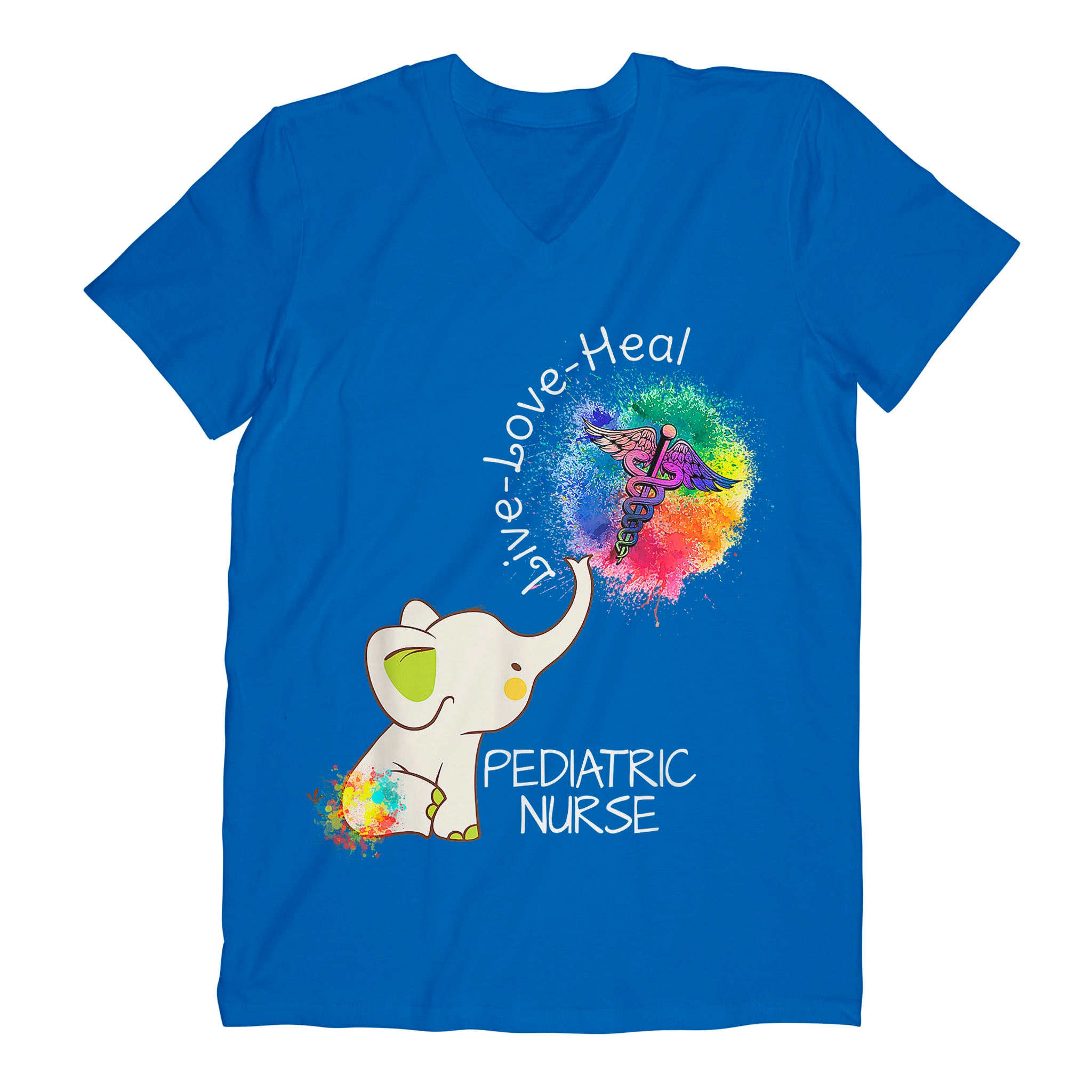 So whether you're looking to show off your own name or create a personalized gift for someone special, LateAndLow Store has got you covered. Start designing your own custom Elephant Live Love Heal Pediatric Nurse Cute Nurse – Comfort V-neck print-on-demand product today, and let us bring your vision to life!