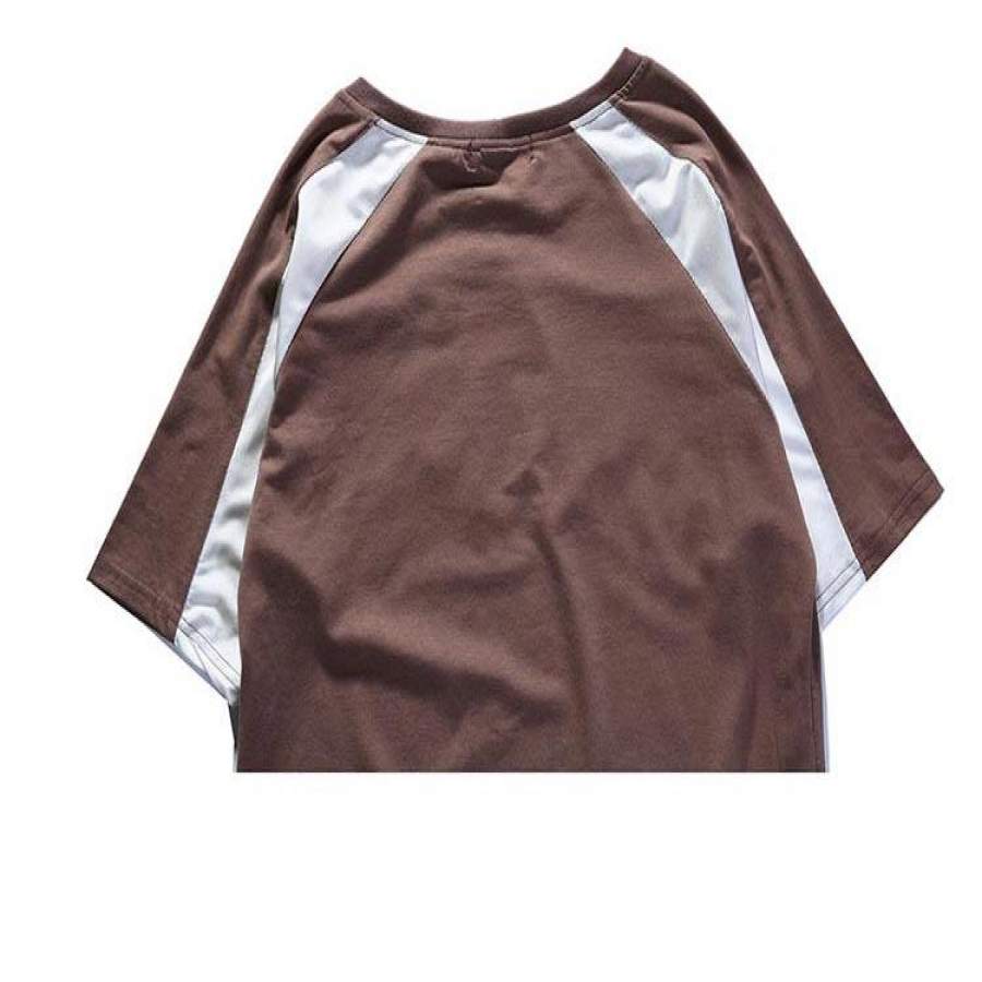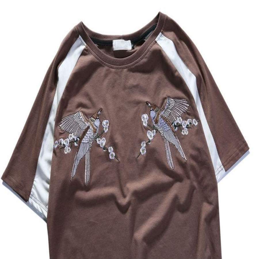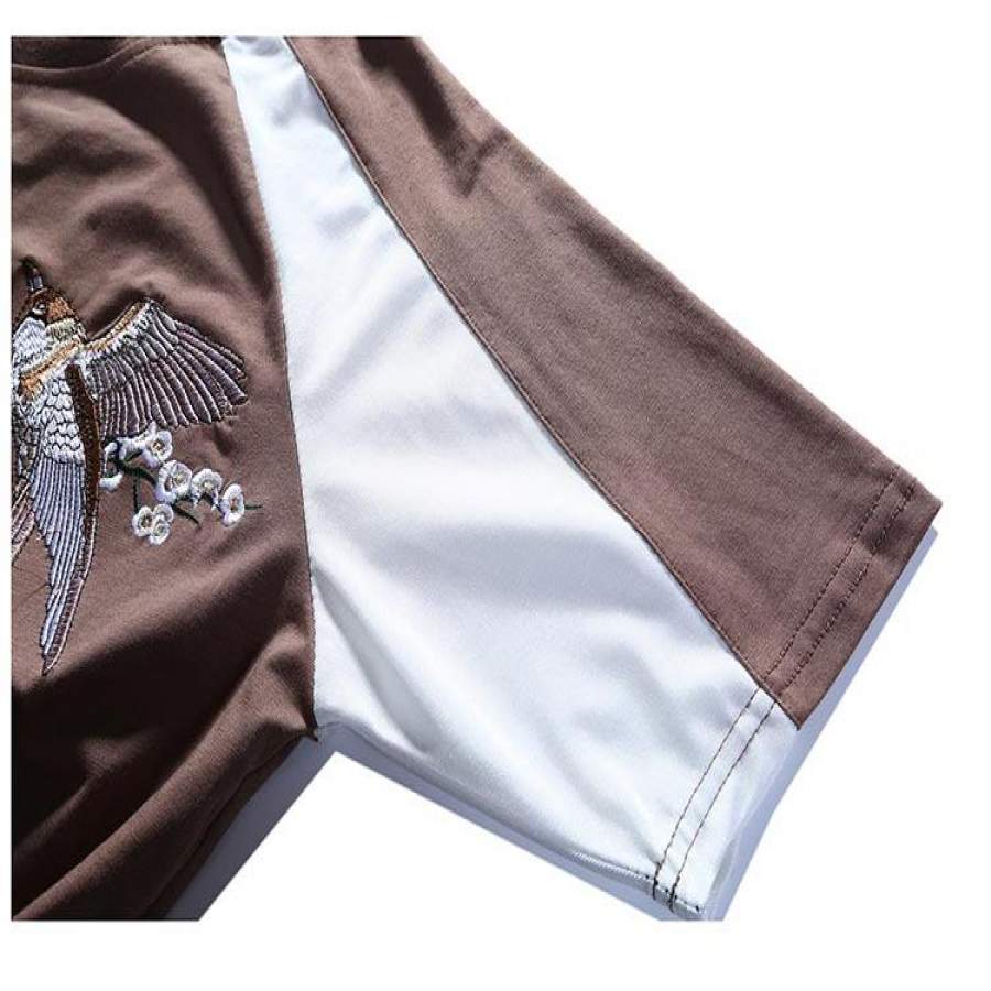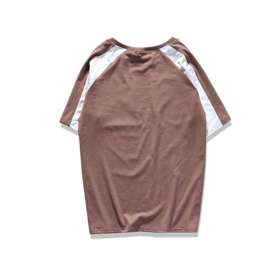 Embroidery Street wear Hip Hop Men Women T-shirt Summer Off-shoulder Color Block Men T Shirt Short Sleeve Brown