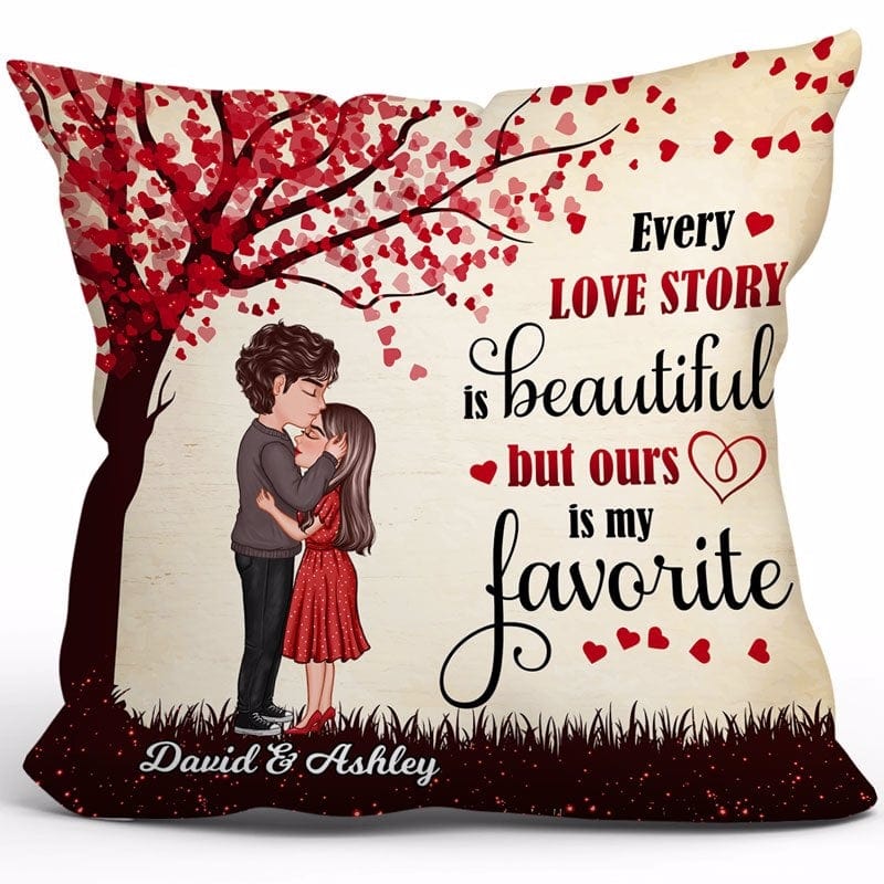 Every Love Story Is Beautiful Kissing Couple Valentine Gift Personalized Pillow (Insert Included)