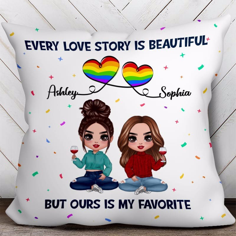 Every Love Story Is Beautiful Lgbt Doll Couple Personalized Pillow (Insert Included)
