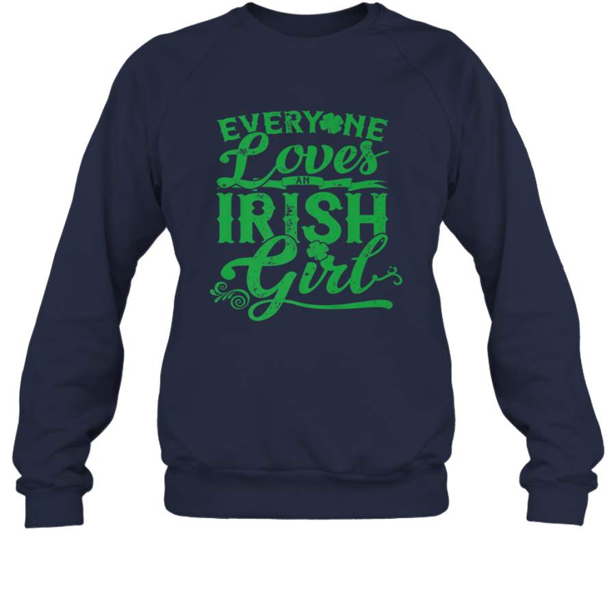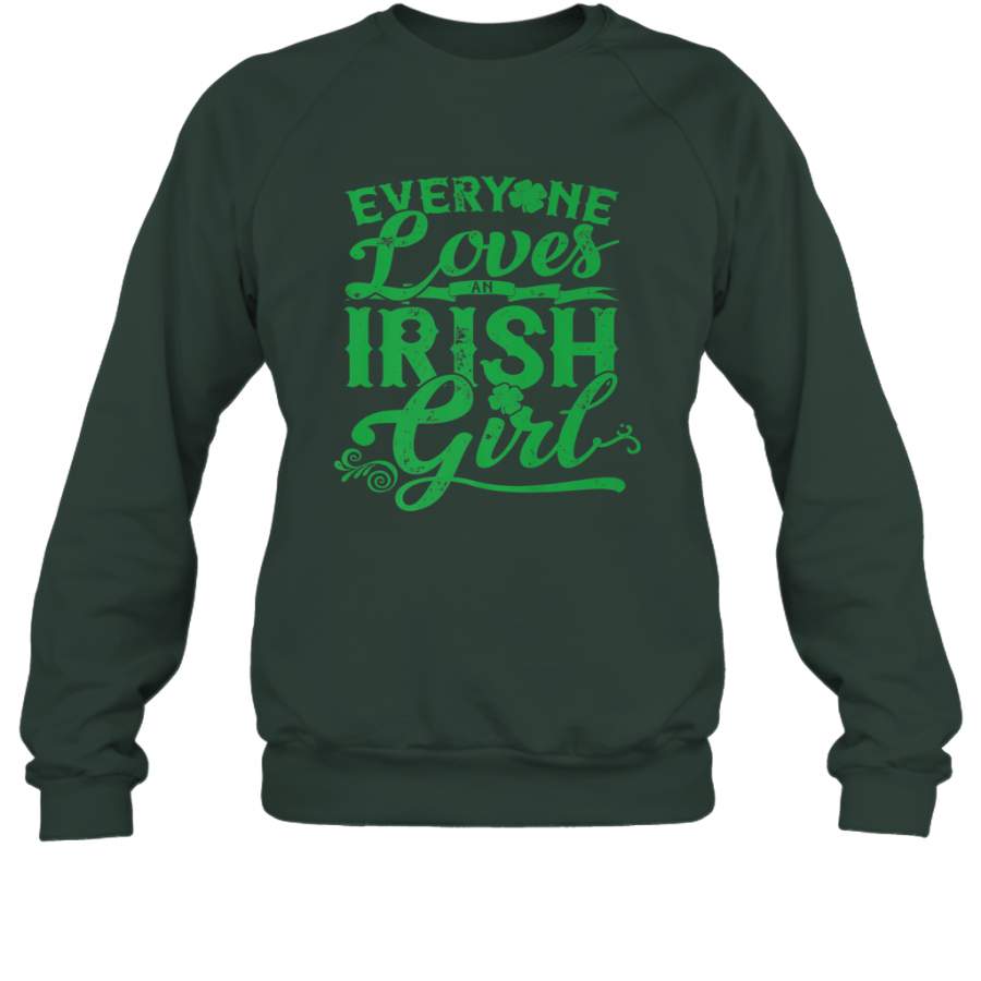 Everyone Loves Irish Girl St Patricks Day Shamrocks Crewneck Sweatshirt
