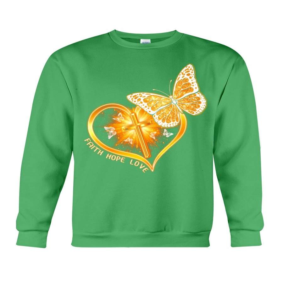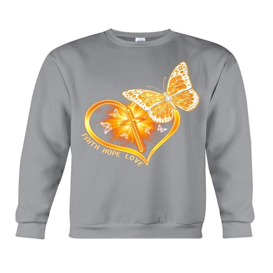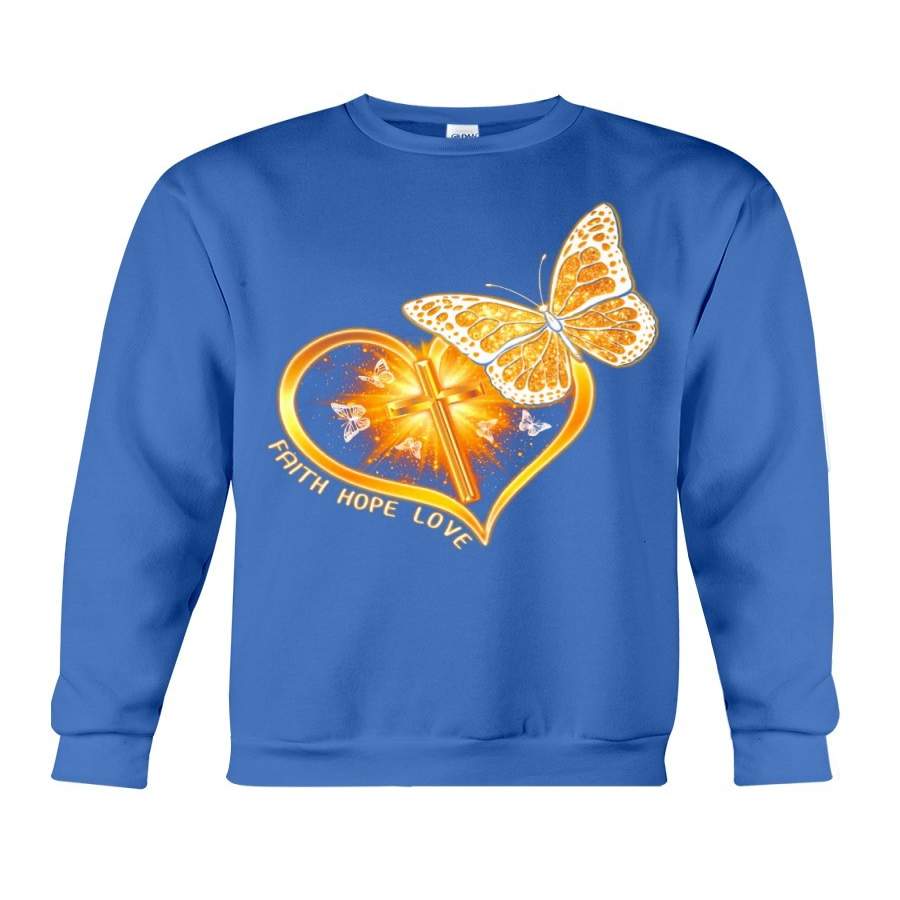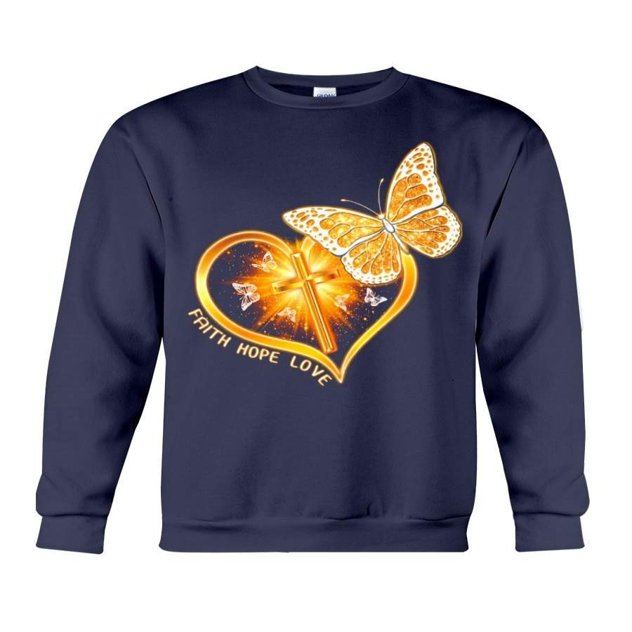 Faith – Hope – Love Beautiful Golden Butterfly Christian Sweatshirt
