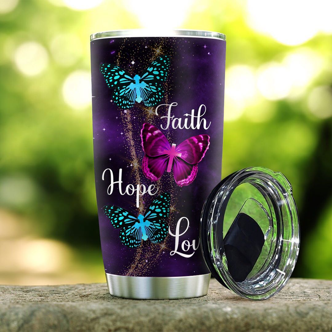 Faith Hope Love Butterfly Stainless Steel Tumbler
