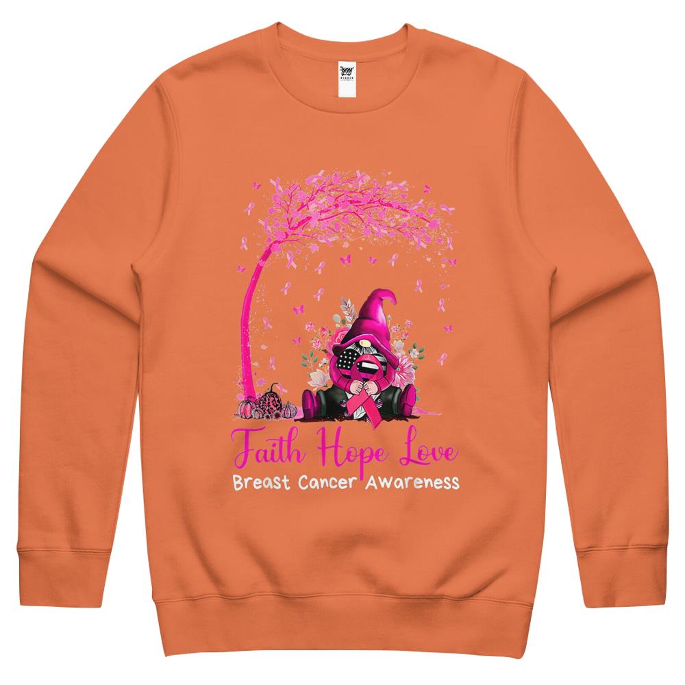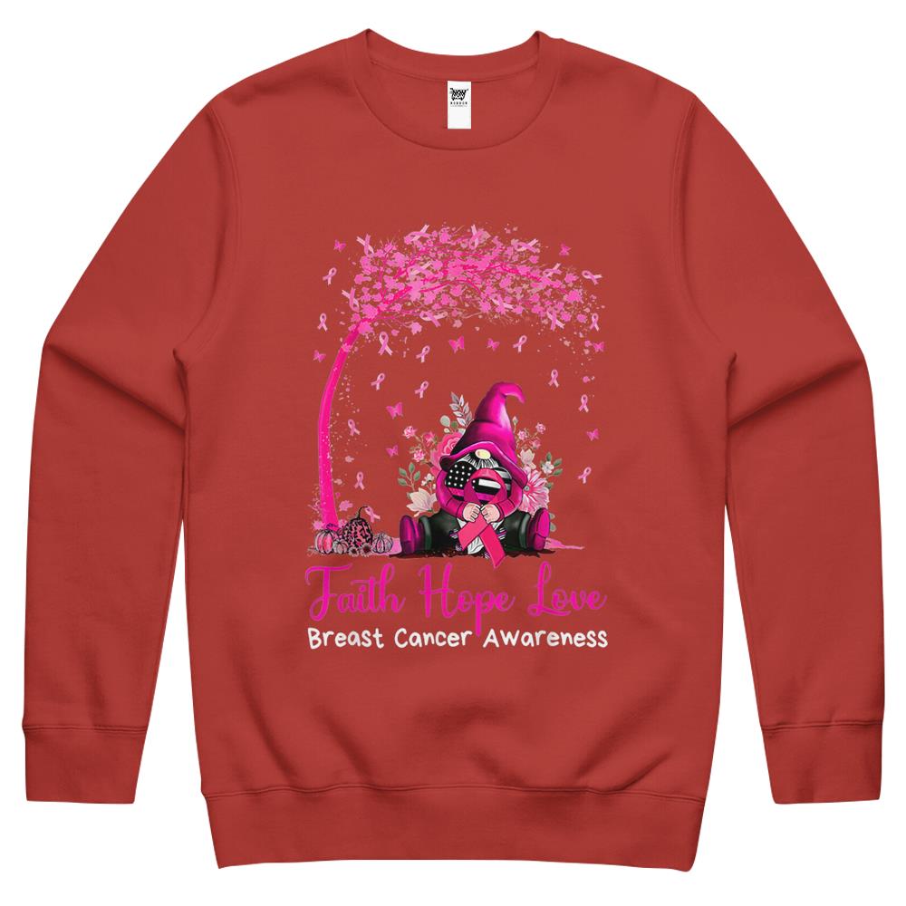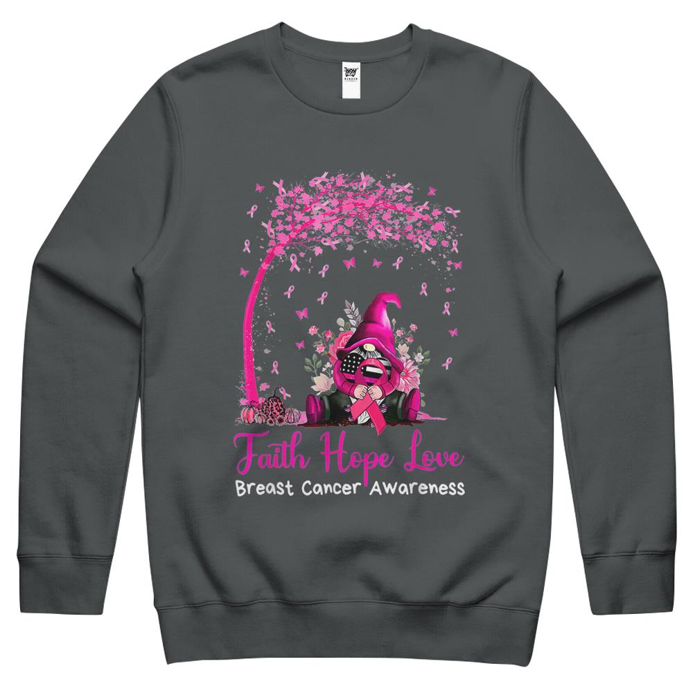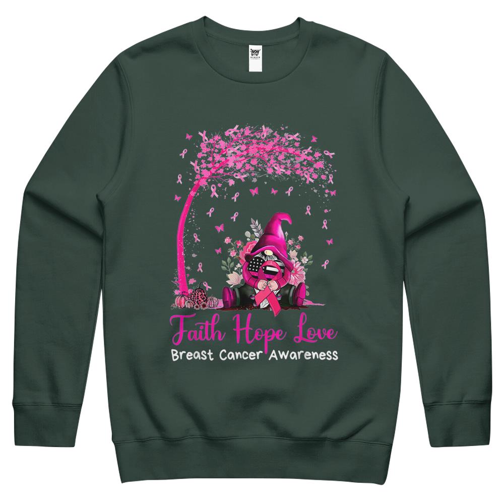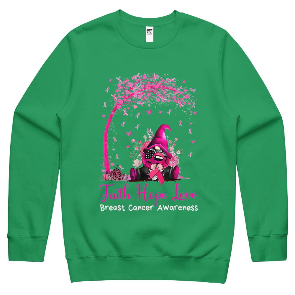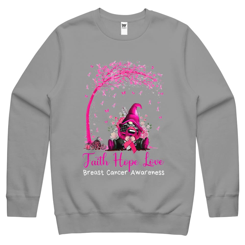 Faith Hope Love Gnome Breast Cancer Awareness Crewneck Sweatshirt
