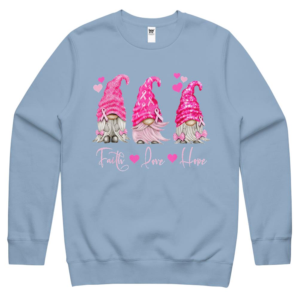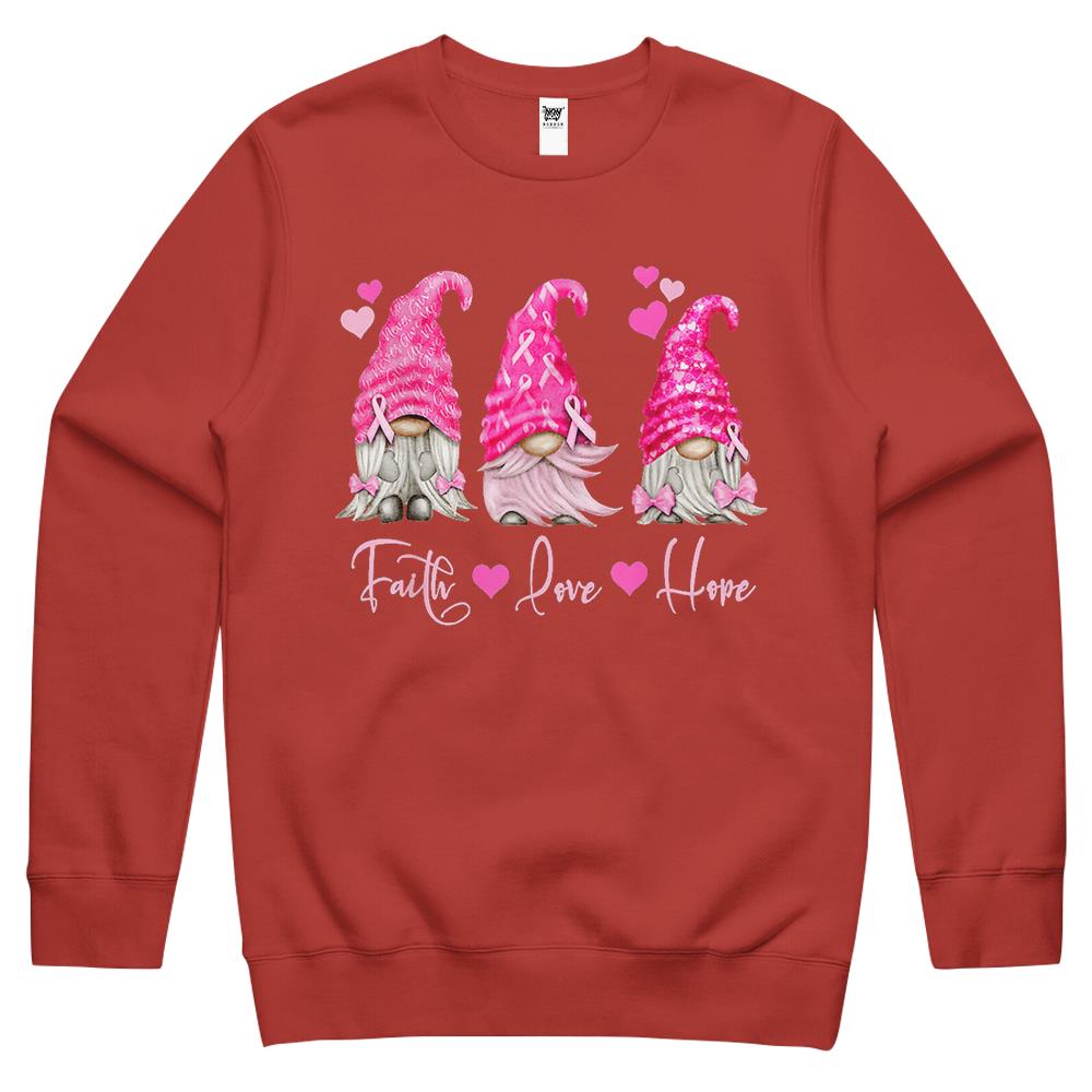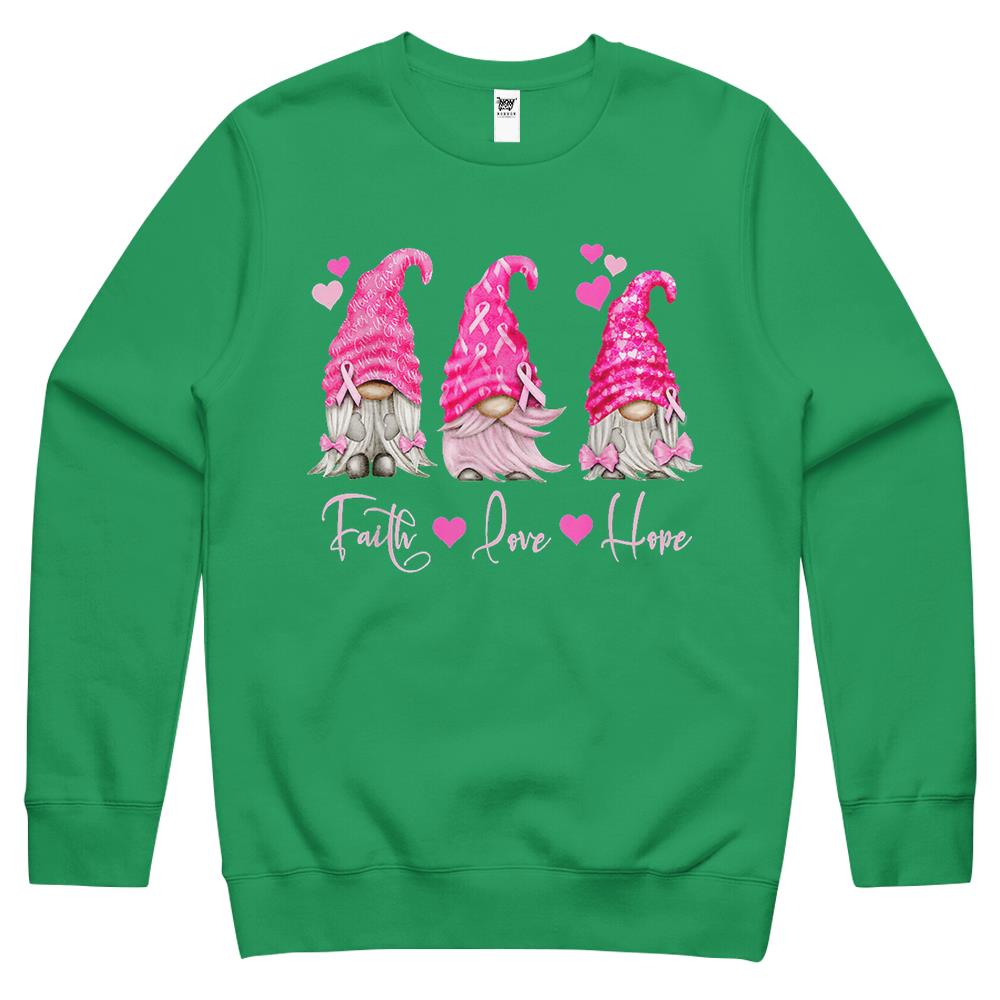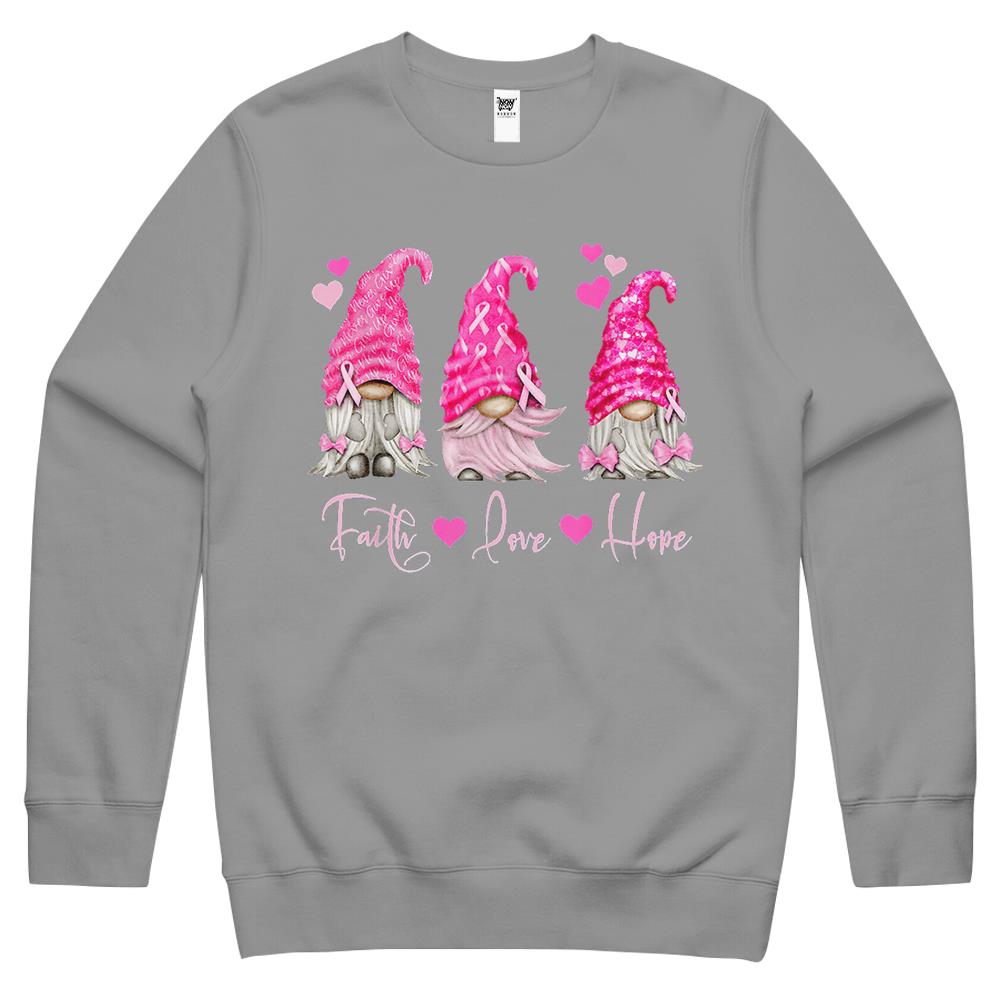 Faith Hope Love Pink Gnome Breast Cancer Awareness Crewneck Sweatshirt