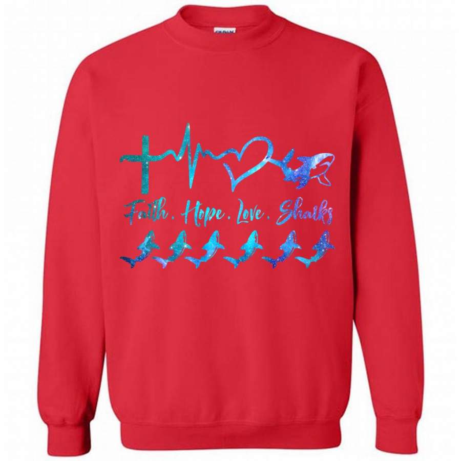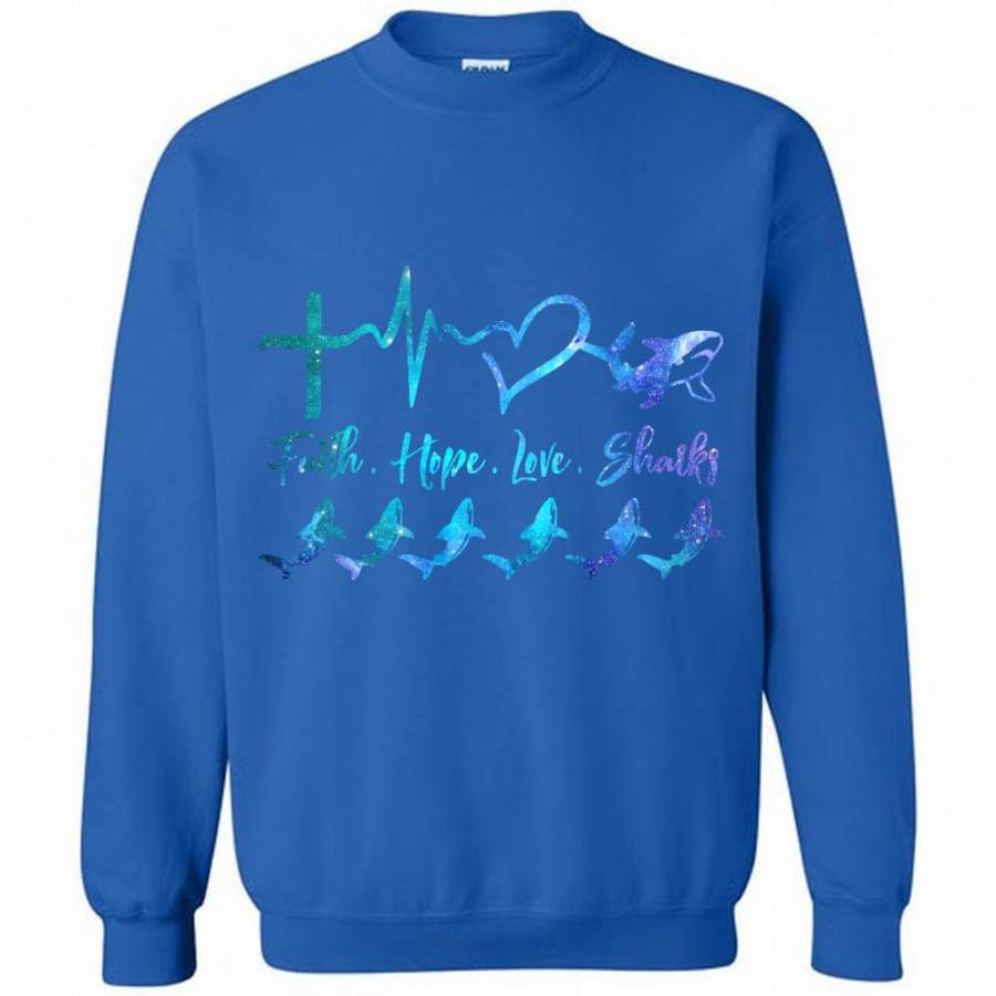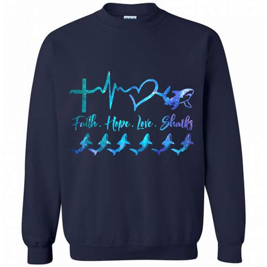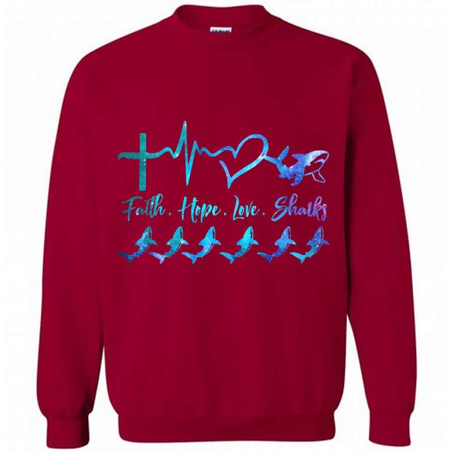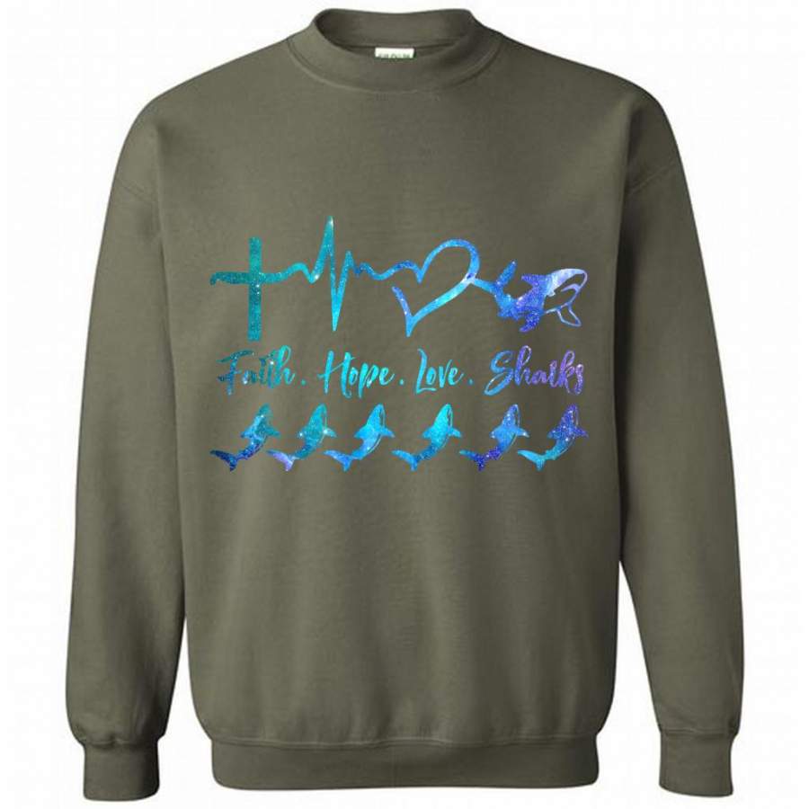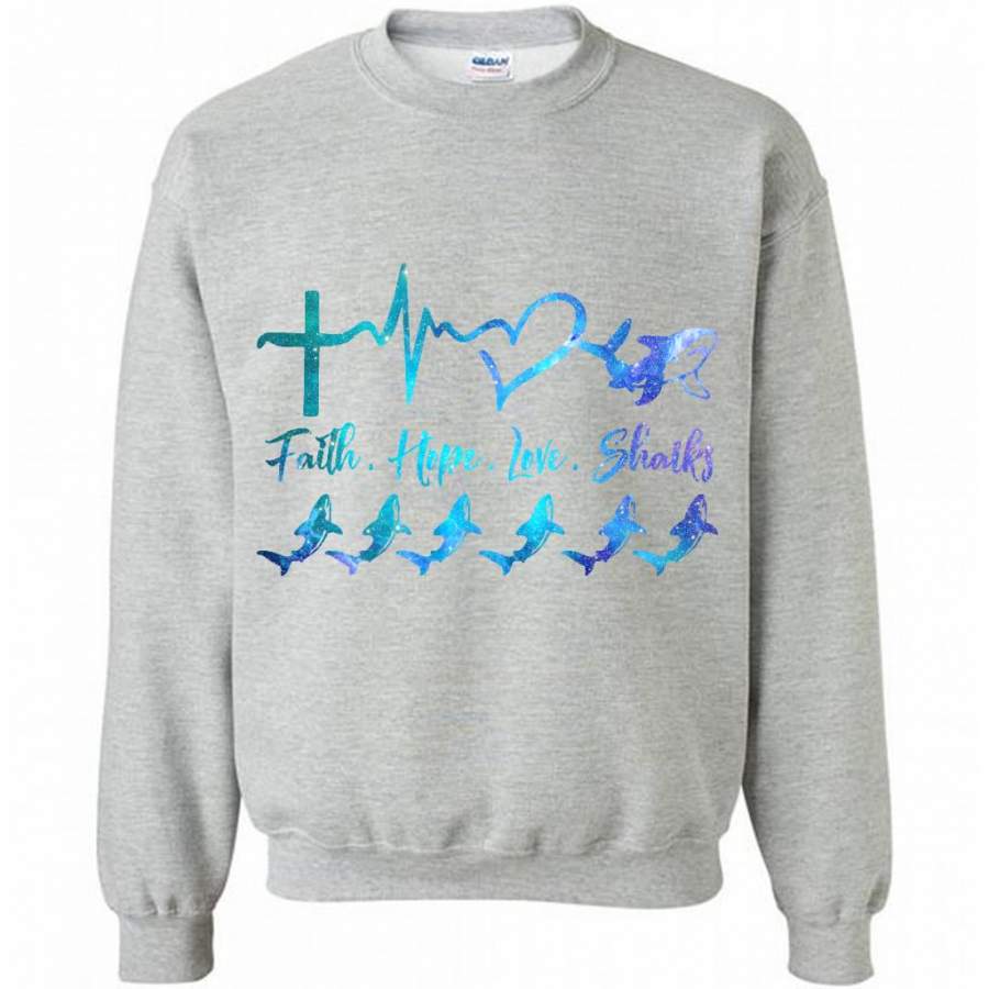 So whether you're looking to show off your own name or create a personalized gift for someone special, LateAndLow Store has got you covered. Start designing your own custom Faith Hope Love Sharks B – Gildan Crewneck Sweatshirt print-on-demand product today, and let us bring your vision to life!