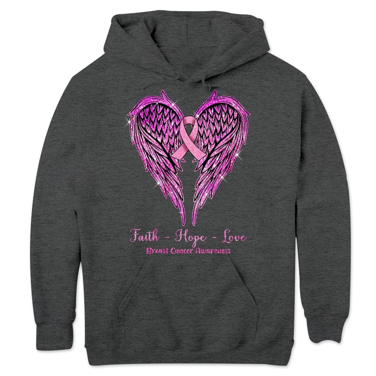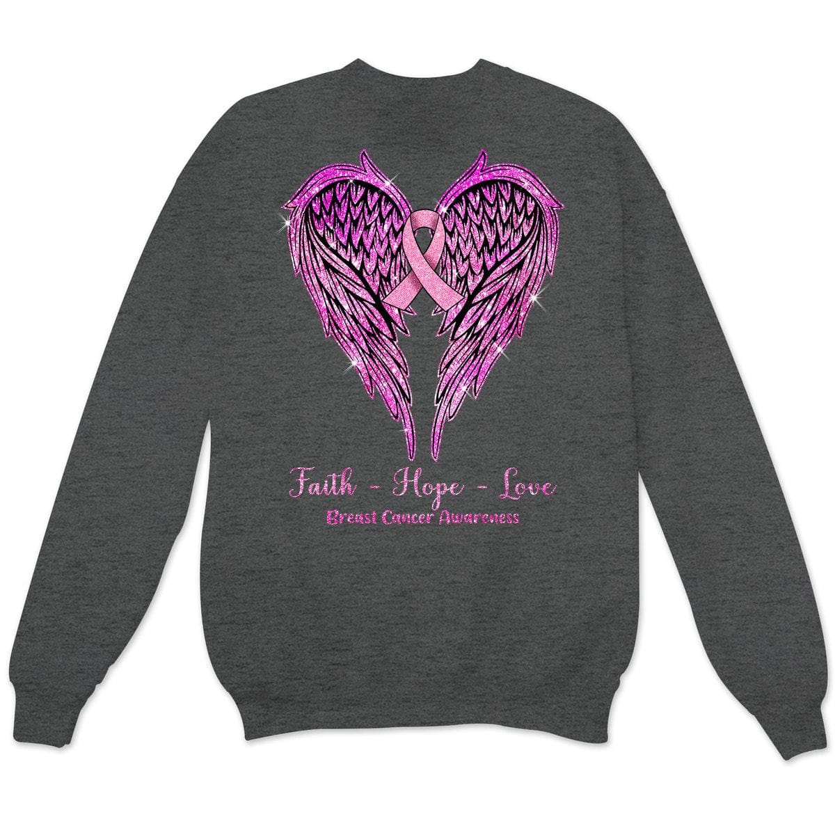 Faith Hope Love With Wings Heart & Ribbon, Breast Cancer Long Sleeve Shirts
