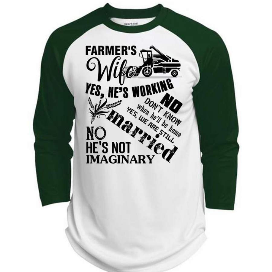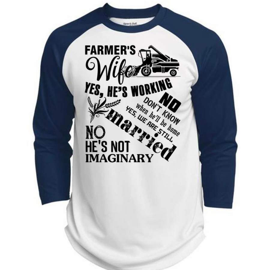 Farmer’s Wife Yes He’s Working T Shirt, I Love Farming T Shirt, Awesome T-Shirts (Polyester Game Baseball Jersey)