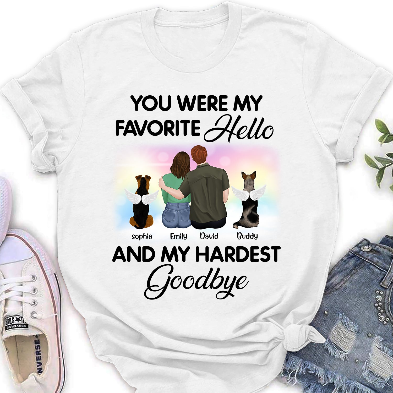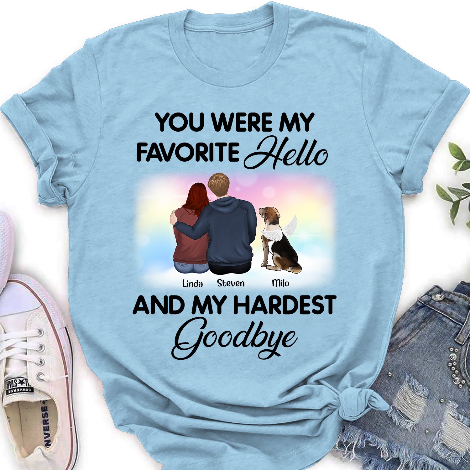 So whether you're looking to show off your own name or create a personalized gift for someone special, LateAndLow Store has got you covered. Start designing your own custom Favorite Hello And My Hardest Goodbye Couple – Personalized Custom Women’S T-Shirt print-on-demand product today, and let us bring your vision to life!