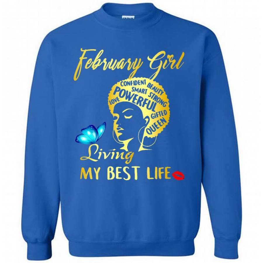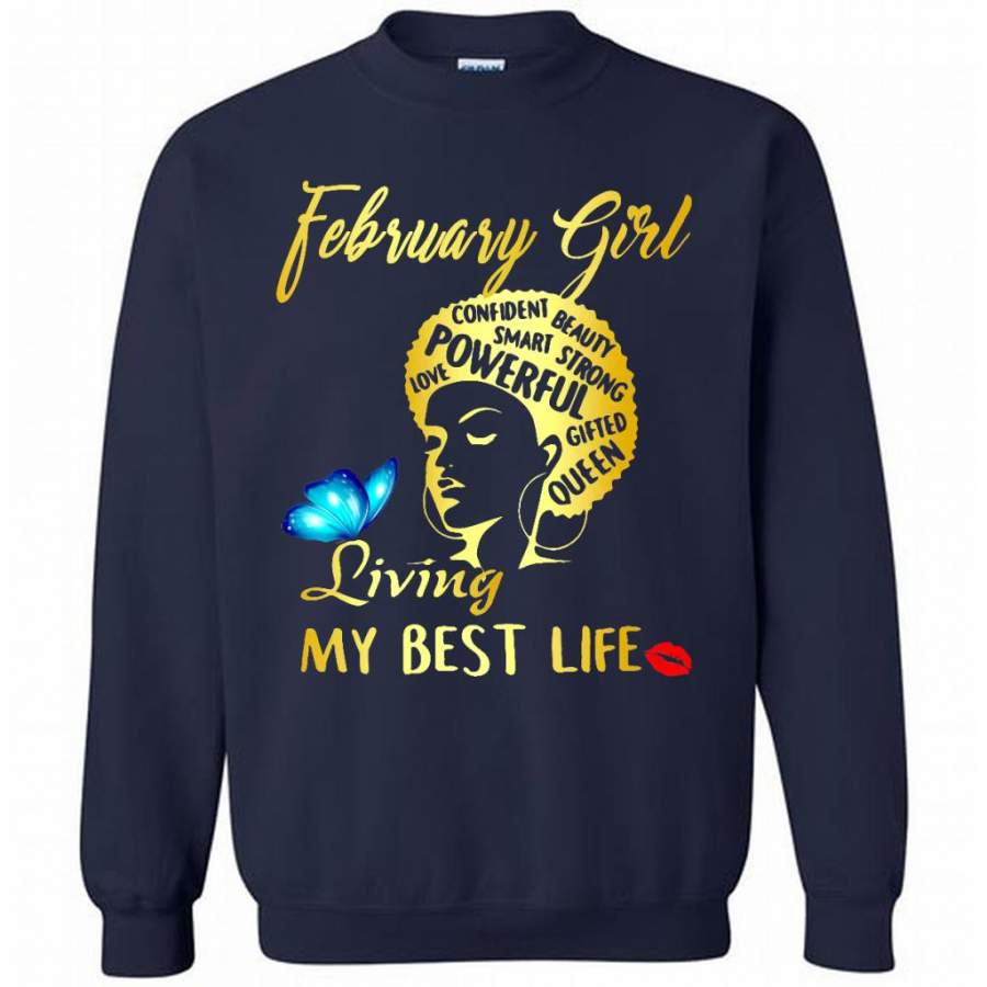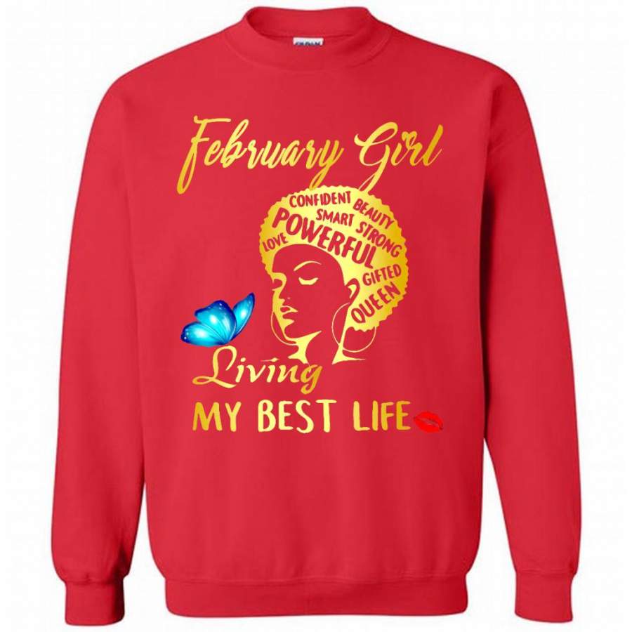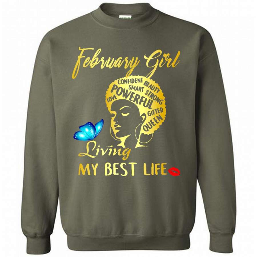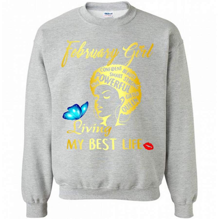 February Girl Living My Best Life Confident Beauty Smart Strong Powerful Love Gifted Queen – Gildan Crewneck Sweatshirt