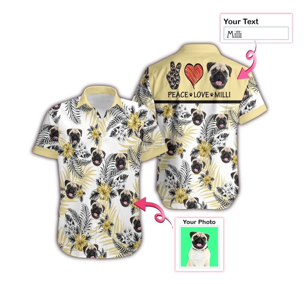 Find Custom Photo And Name Peace Love Dog Hawaiian Aloha Shirts