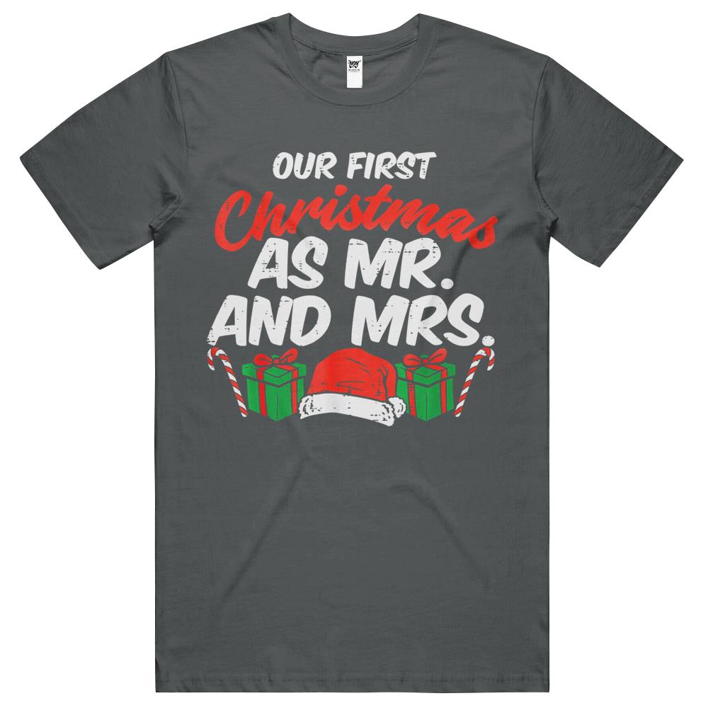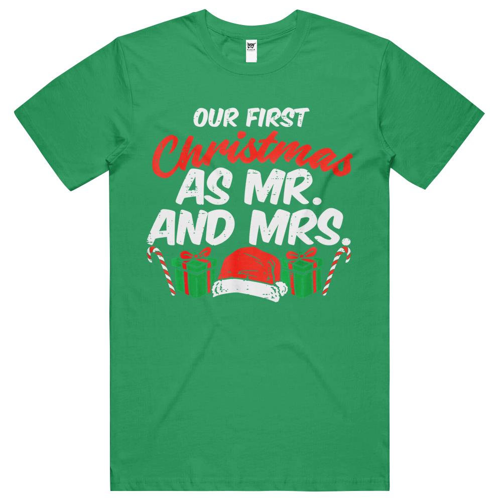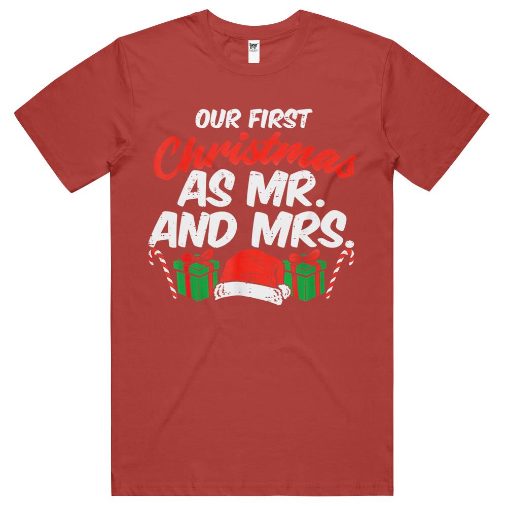 First Christmas As Mr And Mrs Xmas Matching Couples Engaged T Shirts