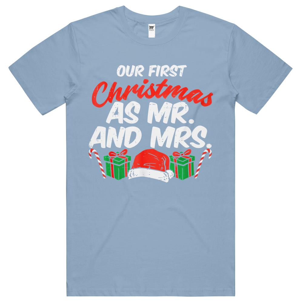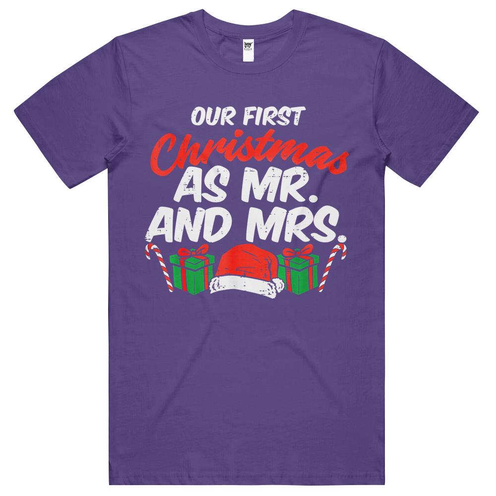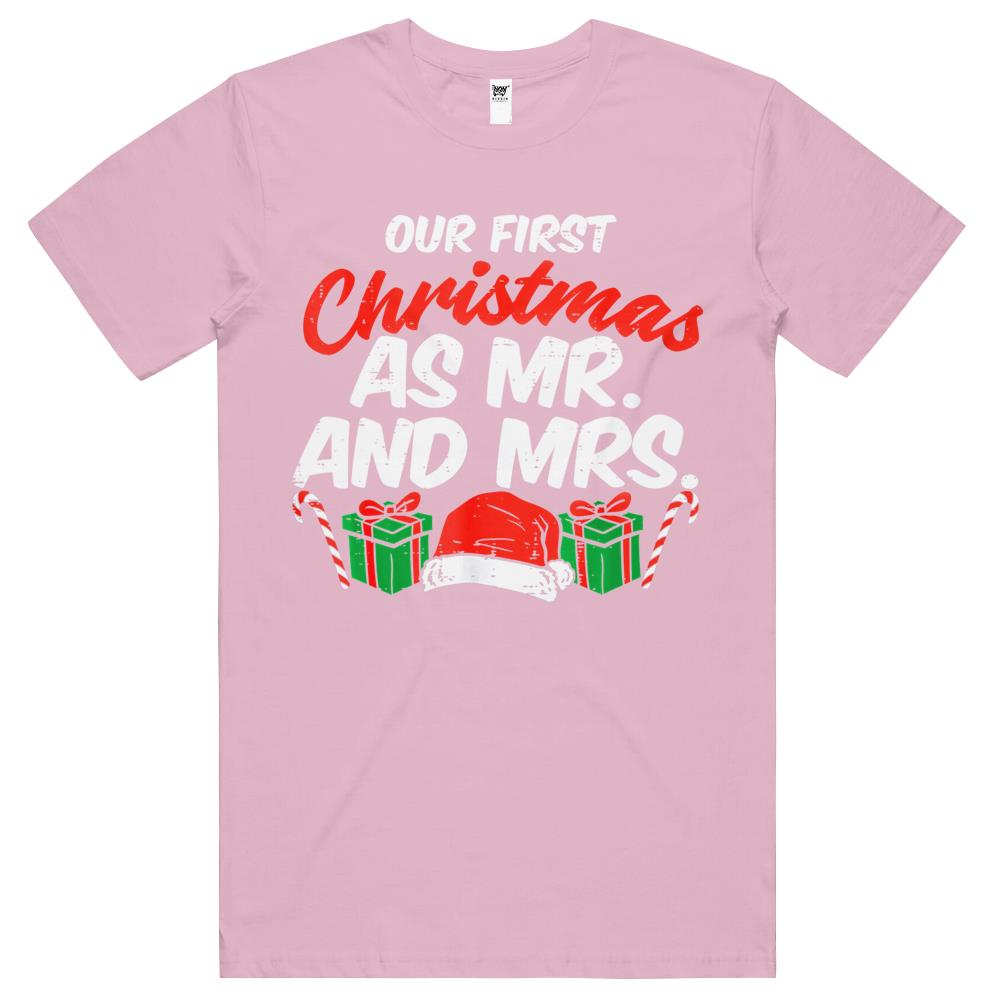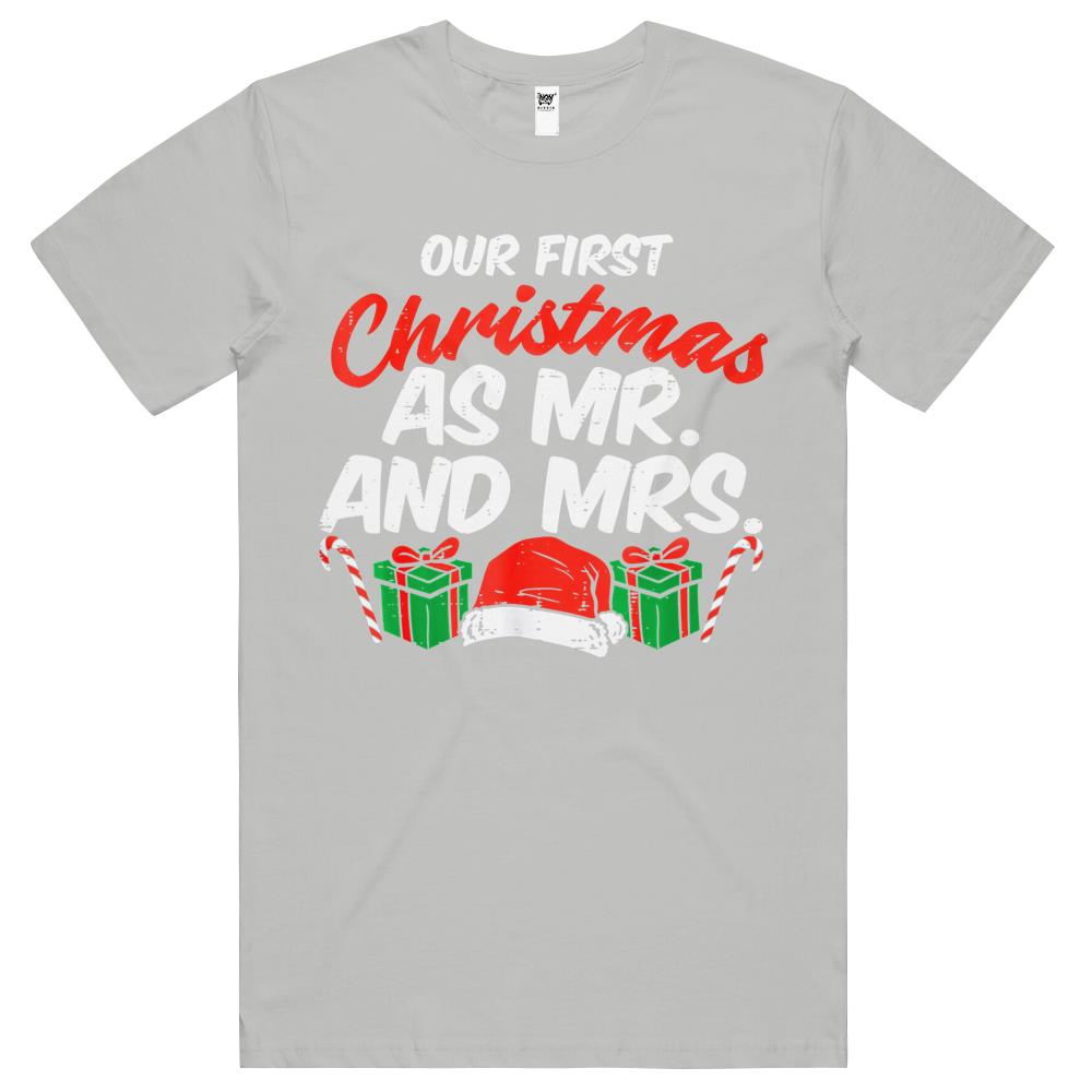 First Christmas As Mr And Mrs Xmas Matching Couples Engaged T Shirts