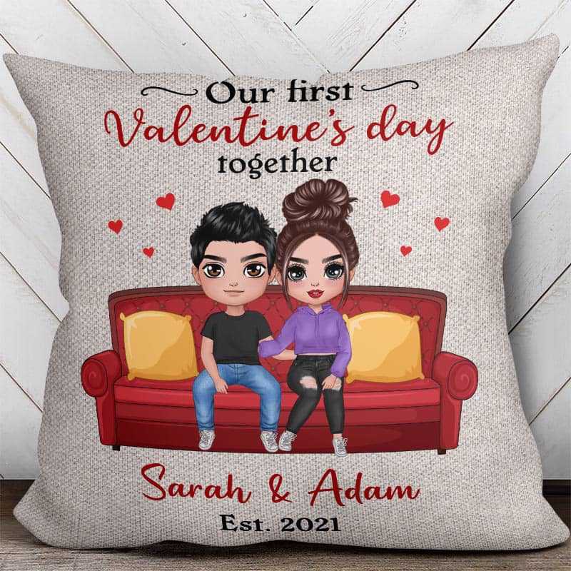 First Valentine Couple Gift For Him For Her Personalized Pillow (Insert Included)
