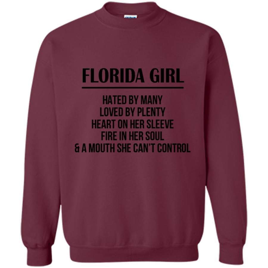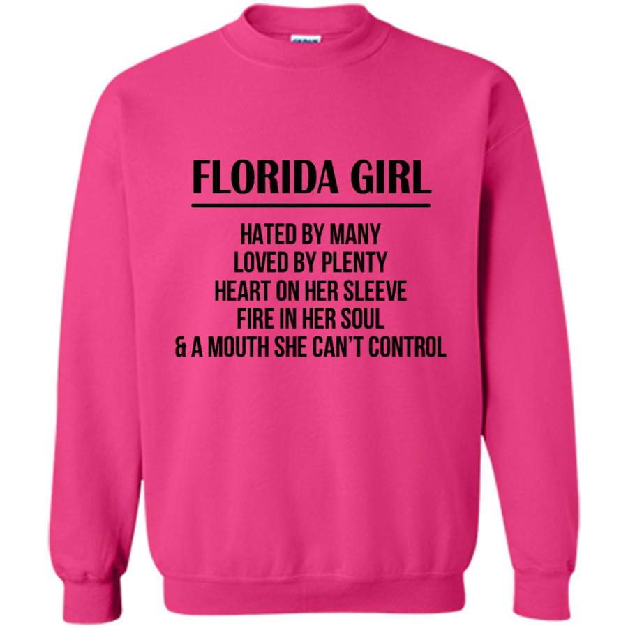 Florida Girl Hated By Many Loved By Plenty Heart On Her Sleeve Fire In Her Soul A Mouth She Can’t Control – Gildan Crewneck Sweatshirt