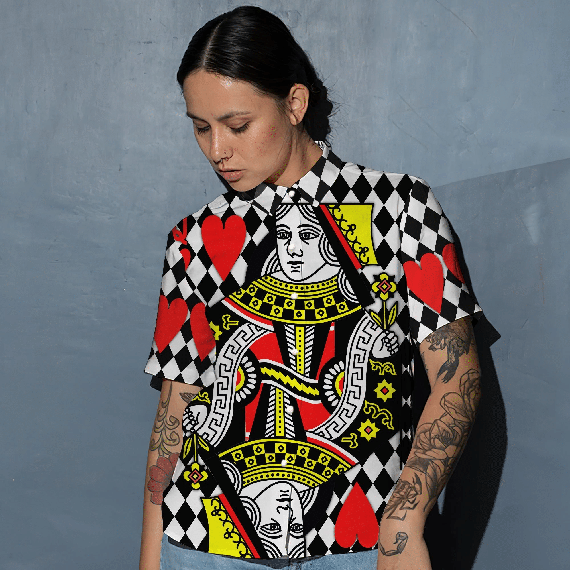 So whether you're looking to show off your own name or create a personalized gift for someone special, LateAndLow Store has got you covered. Start designing your own custom Flowermoonz 3D Queen Of Heart Couple Custom Short Sleeve Shirt print-on-demand product today, and let us bring your vision to life!