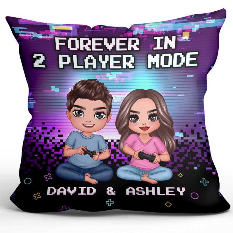 So whether you're looking to show off your own name or create a personalized gift for someone special, LateAndLow Store has got you covered. Start designing your own custom Forever In 2 Players Mode Gaming Doll Couple Personalized Pillow (Insert Included) print-on-demand product today, and let us bring your vision to life!
