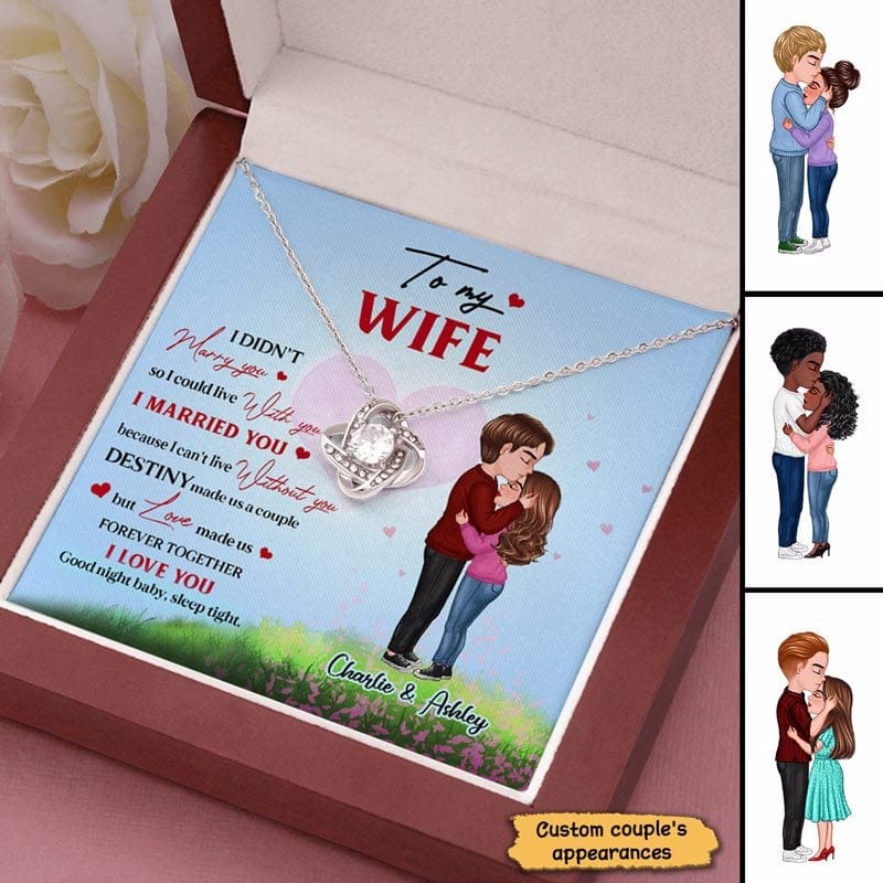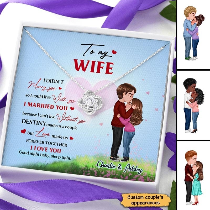 Forever Together Couple Romantic Valentine Gift For Her Personalized Love Knot Necklace Message Card
