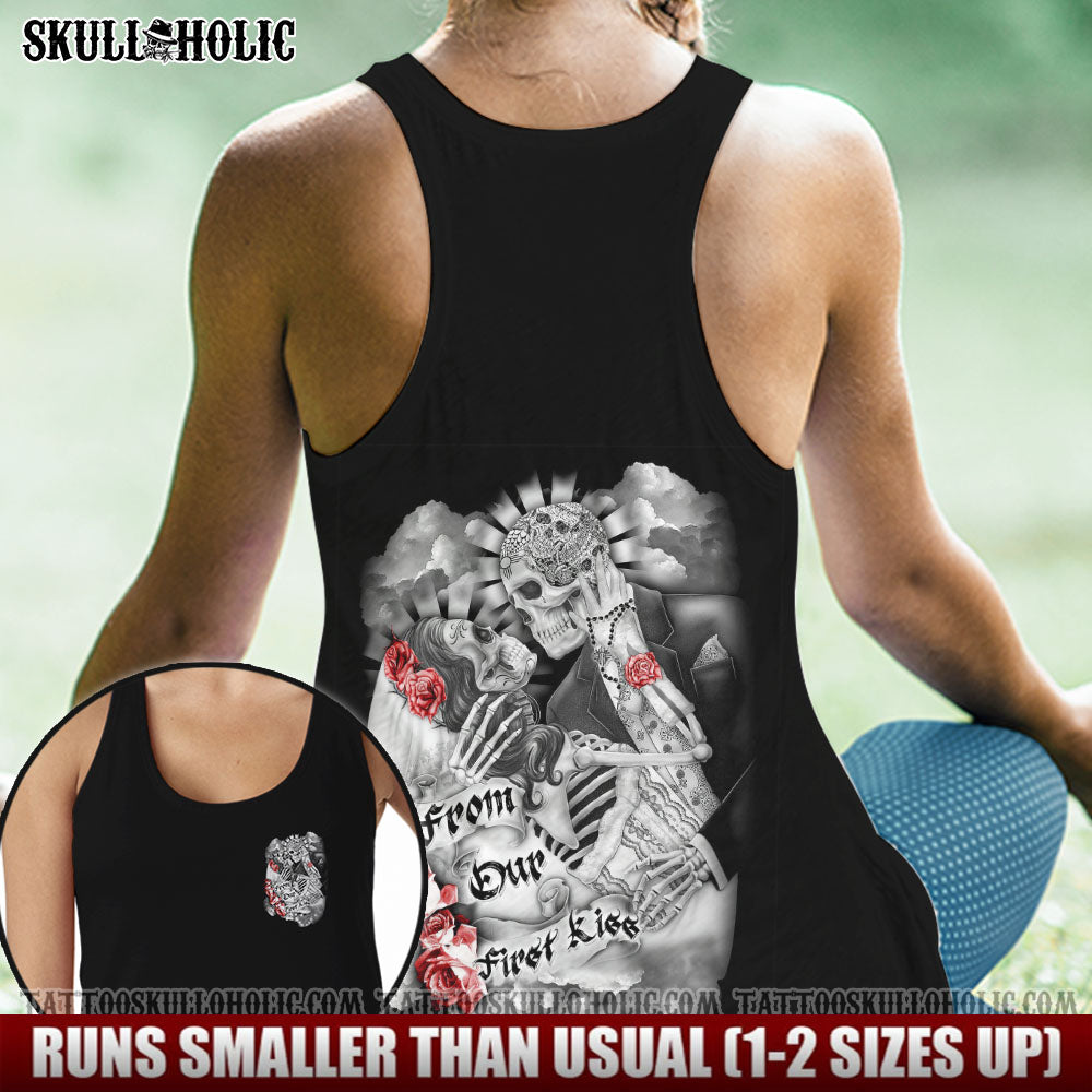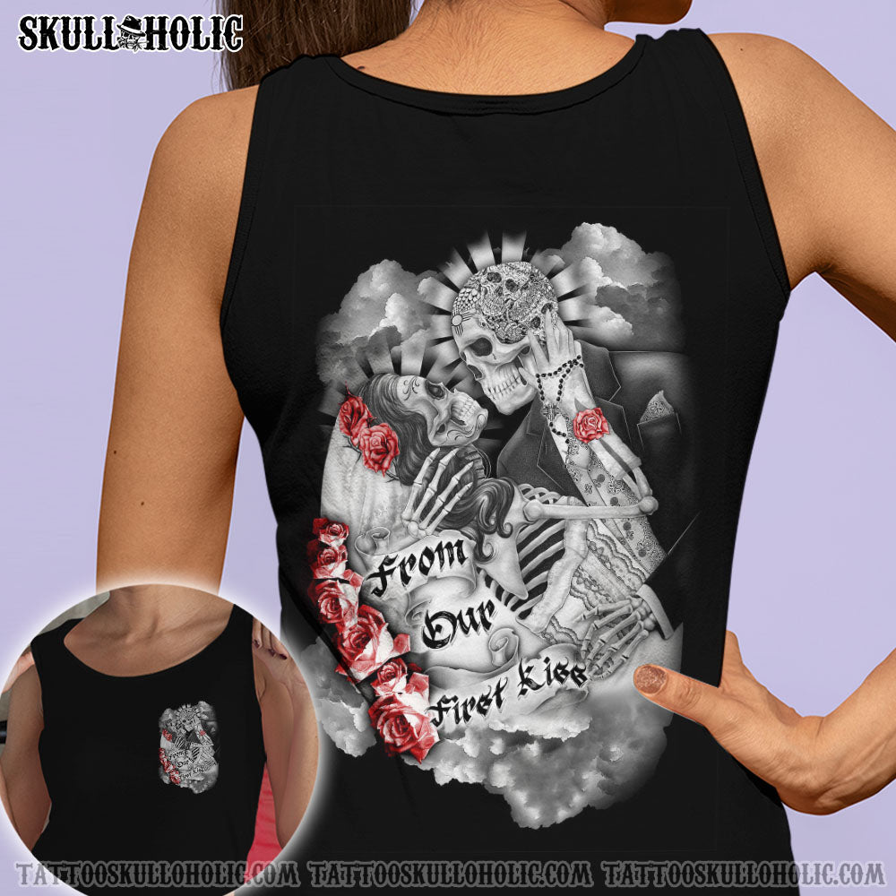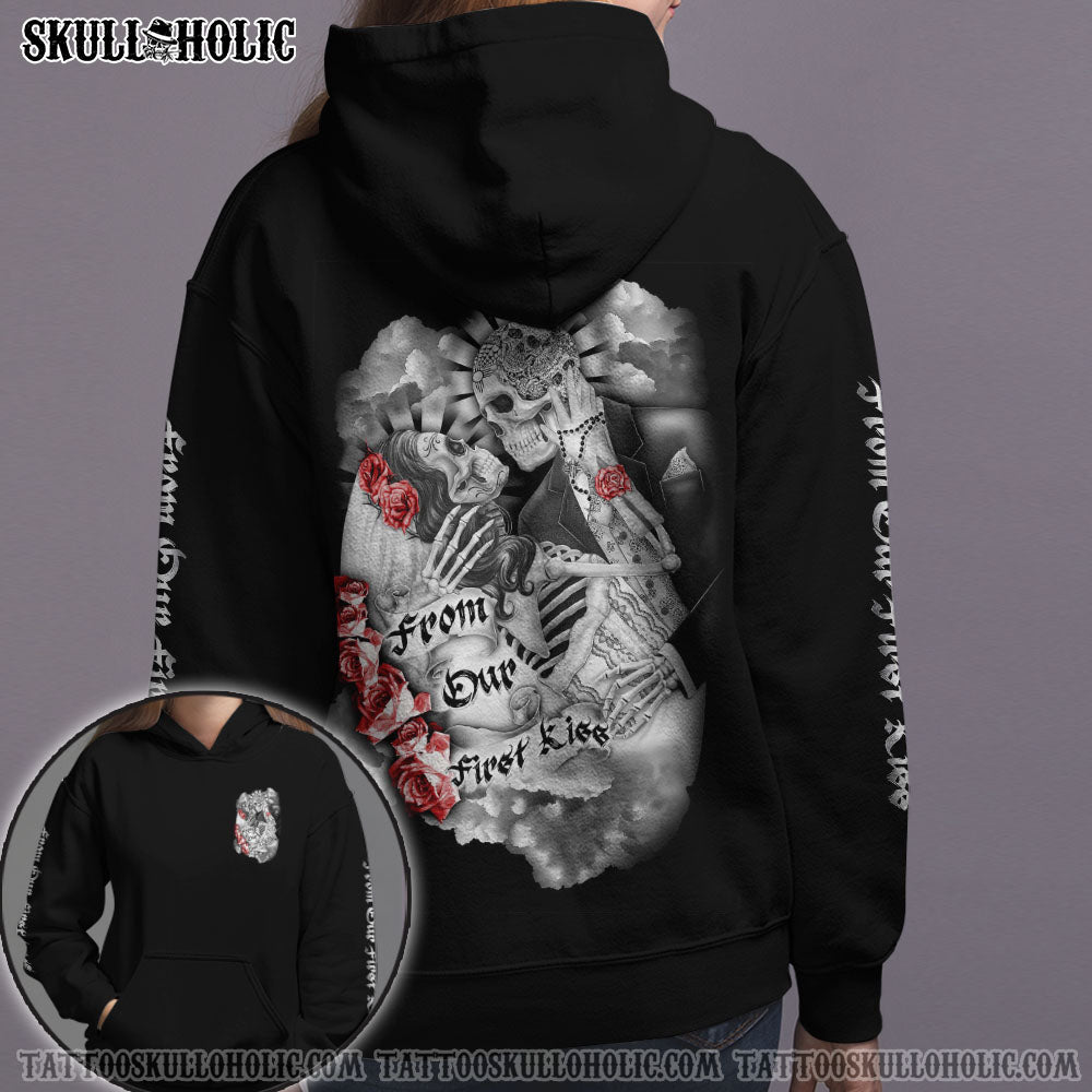 So whether you're looking to show off your own name or create a personalized gift for someone special, LateAndLow Store has got you covered. Start designing your own custom From Our First Kiss Couple All Over Print – Tlno0801221 print-on-demand product today, and let us bring your vision to life!
