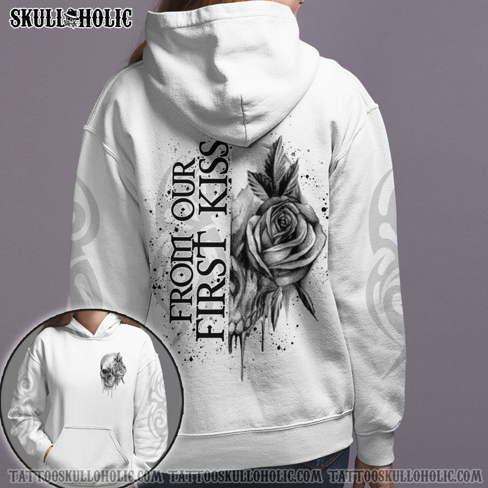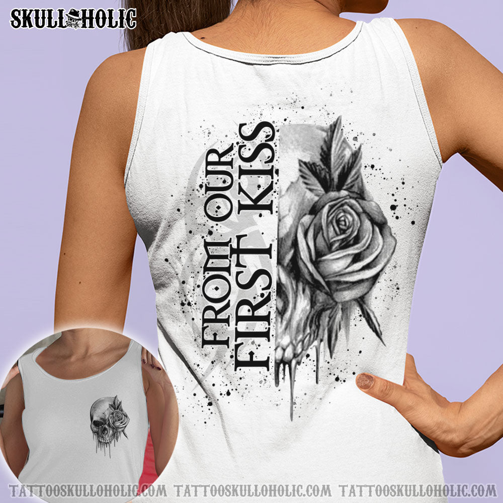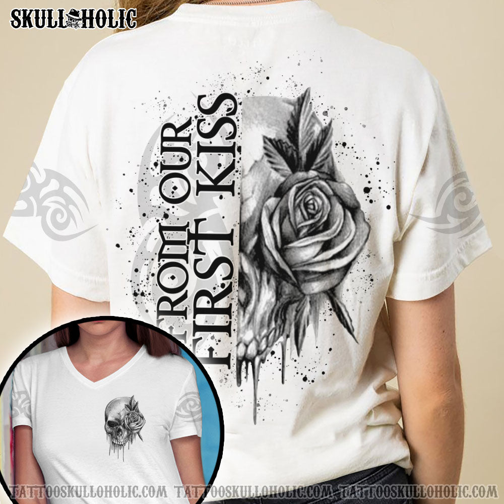 So whether you're looking to show off your own name or create a personalized gift for someone special, LateAndLow Store has got you covered. Start designing your own custom From Our First Kiss Melt Skull Couple All Over Print – Tlnx111221Ha print-on-demand product today, and let us bring your vision to life!