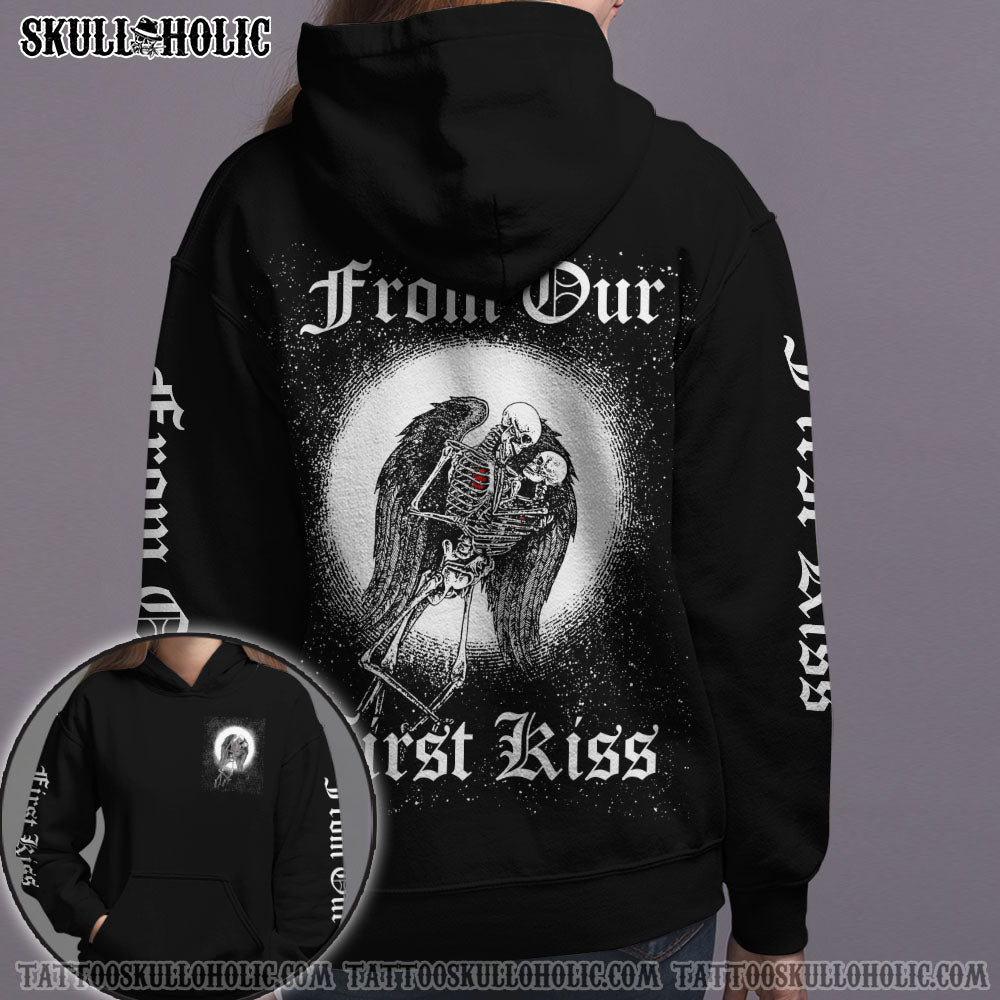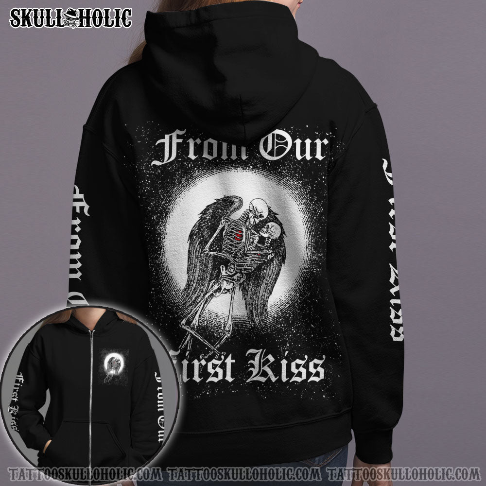 So whether you're looking to show off your own name or create a personalized gift for someone special, LateAndLow Store has got you covered. Start designing your own custom From Our First Kiss Skeleton Wings Couple All Over Print – Tltr0712212 print-on-demand product today, and let us bring your vision to life!