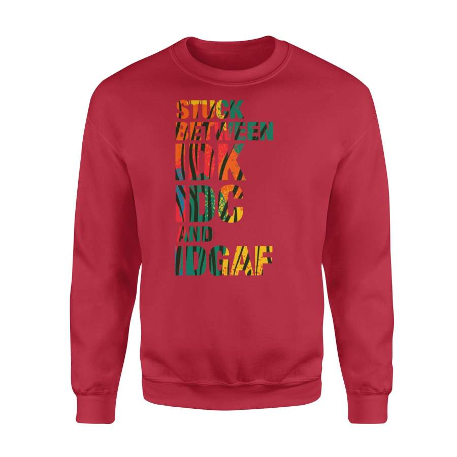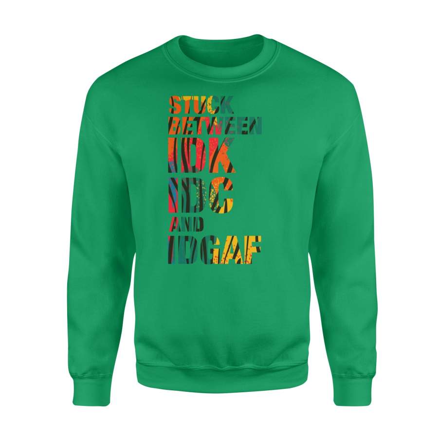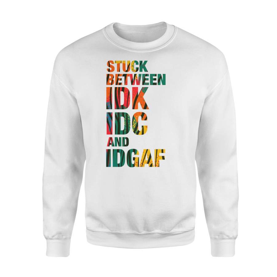 Fun Gift Idea – Stuck Between Idk Idc And Idgaf For Loved Ones 2 – Standard Crew Neck Sweatshirt