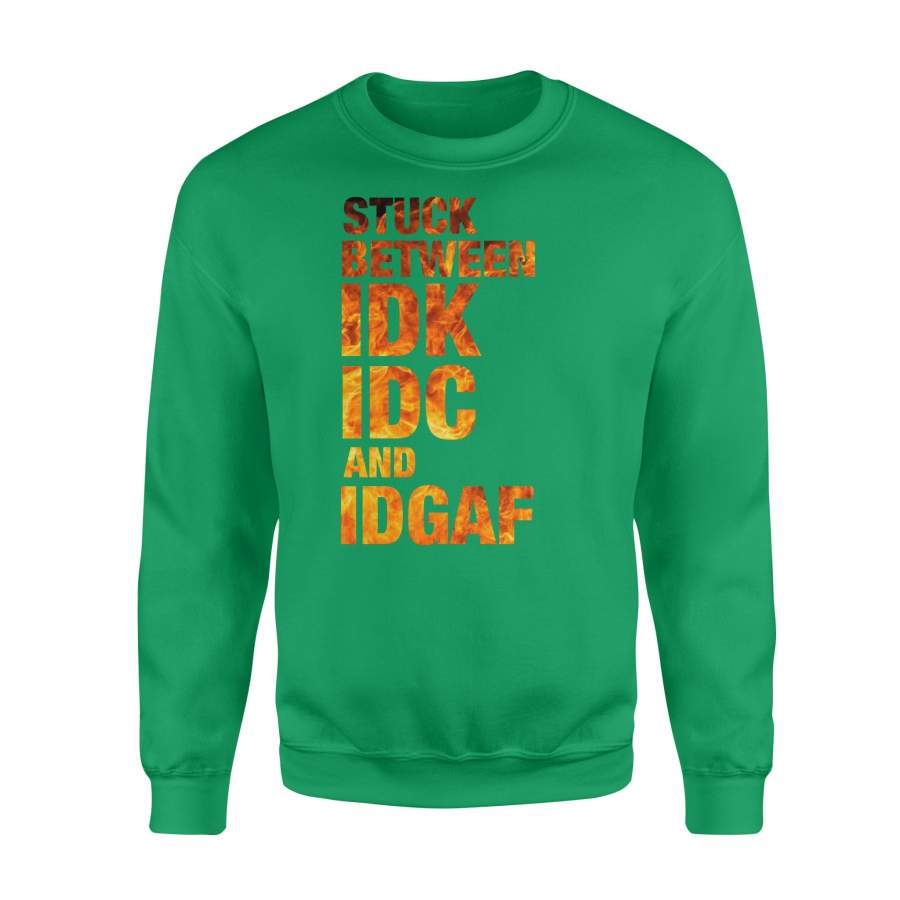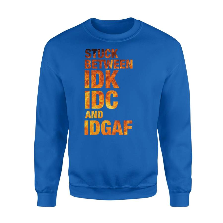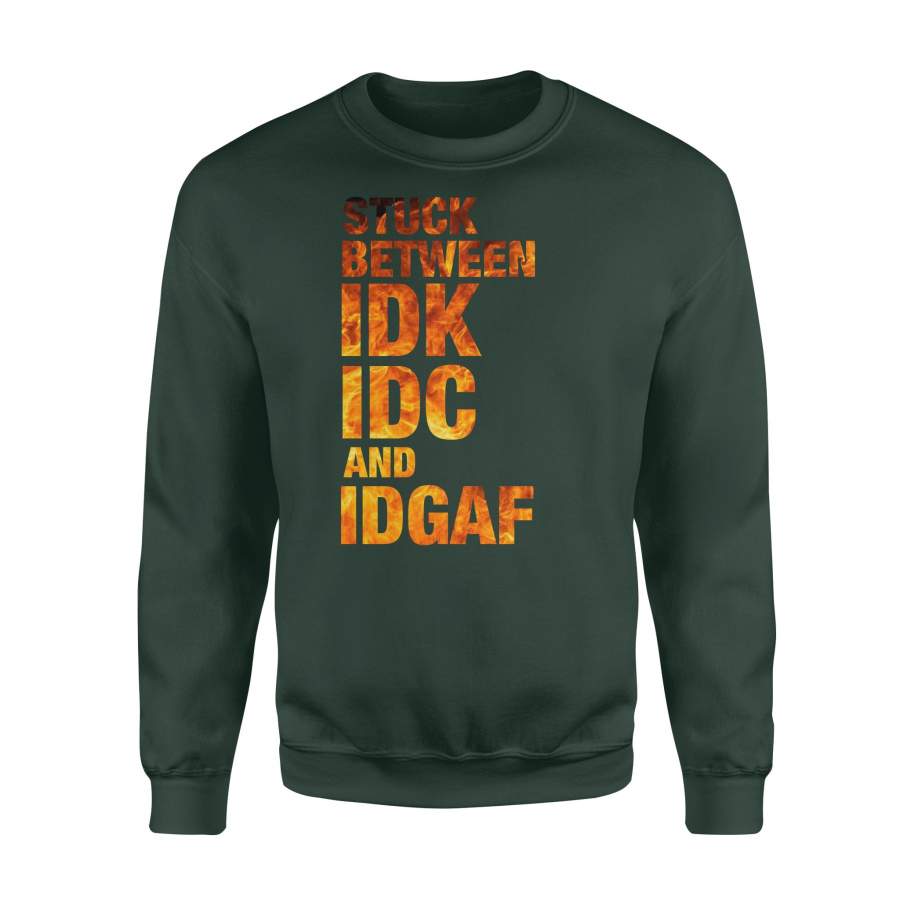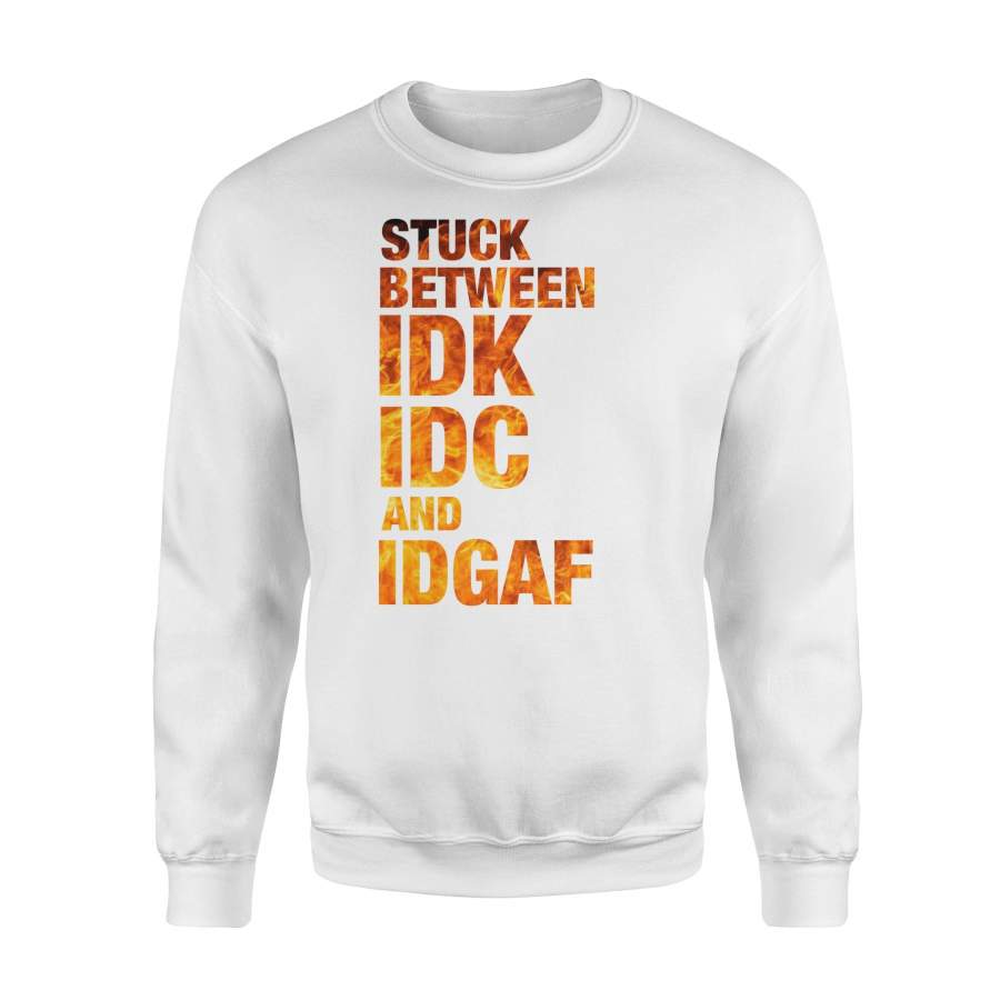 Fun Gift Idea – Stuck Between Idk Idc And Idgaf For Loved Ones – Standard Crew Neck Sweatshirt