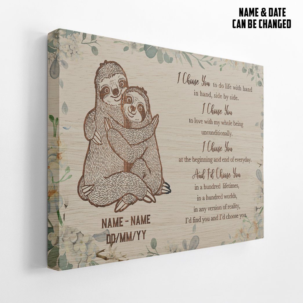 So whether you're looking to show off your own name or create a personalized gift for someone special, LateAndLow Store has got you covered. Start designing your own custom Gearhumans Gearhuman 3D I Choose You Sloth Couple Custom Text Canvas print-on-demand product today, and let us bring your vision to life!