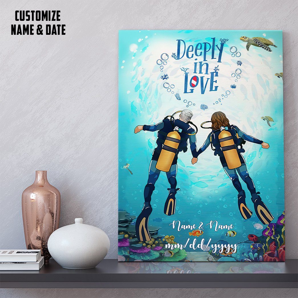 Gearhumans Gearhuman 3D Scuba Diving Couple Deeply In Love Custom Name Text Canvas