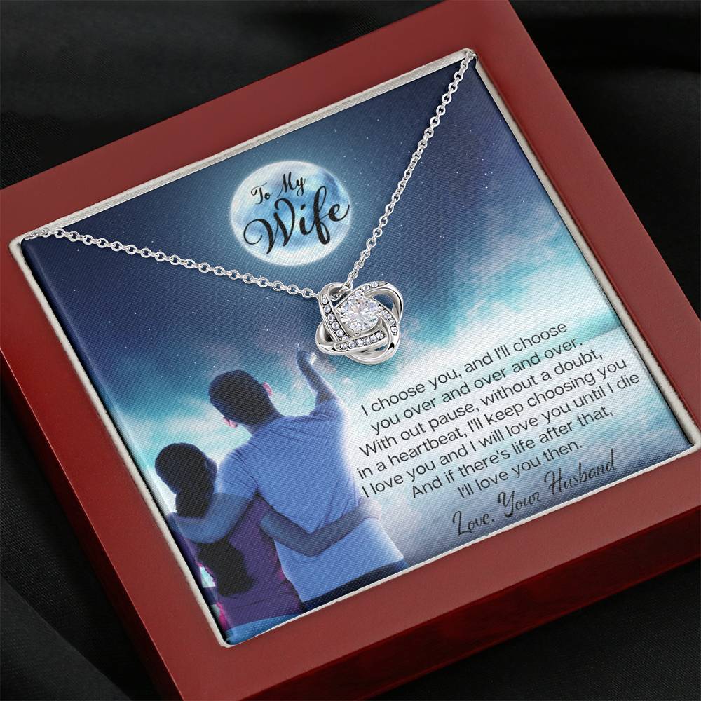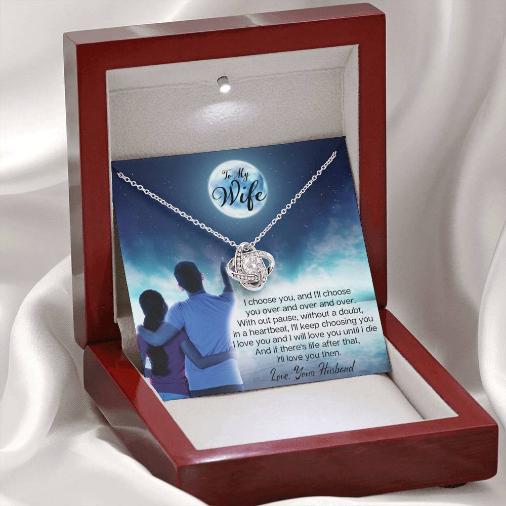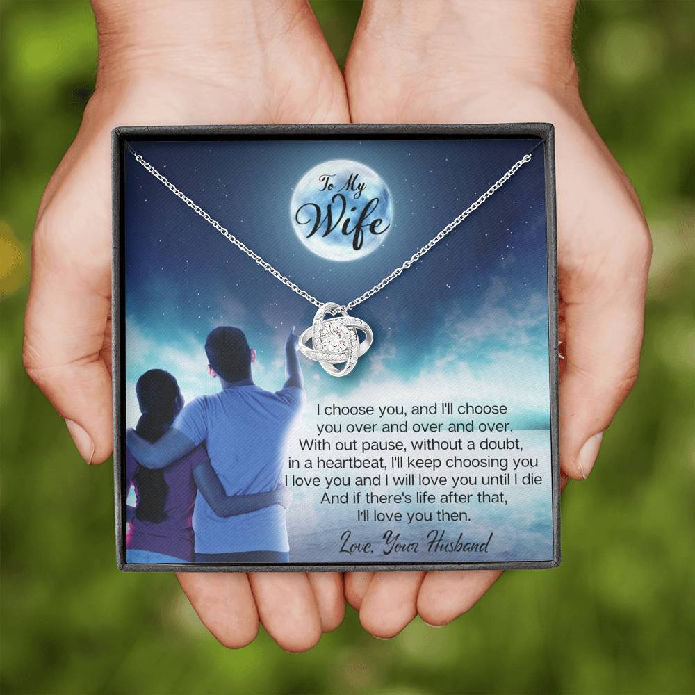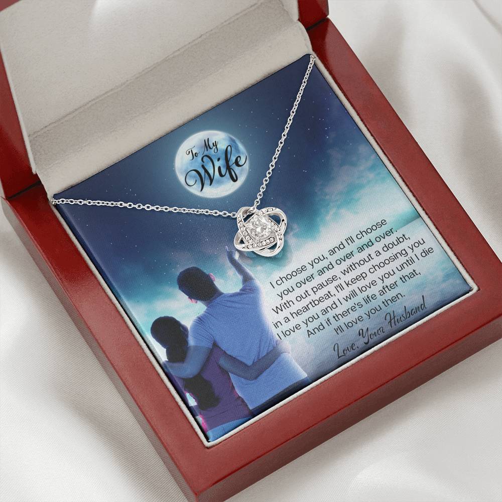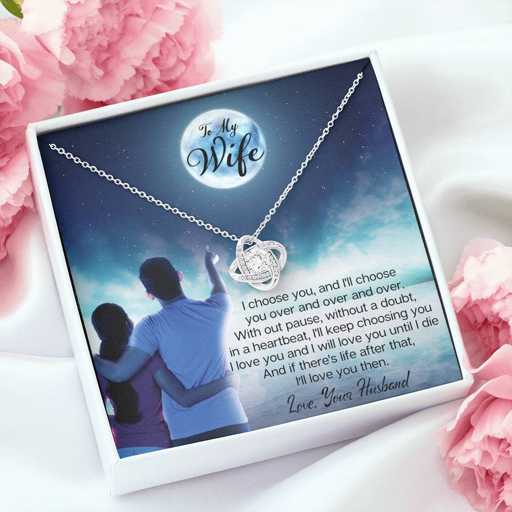 Gift To Wife -I Choose You Quote -Moon Couple – Love Knot Necklace