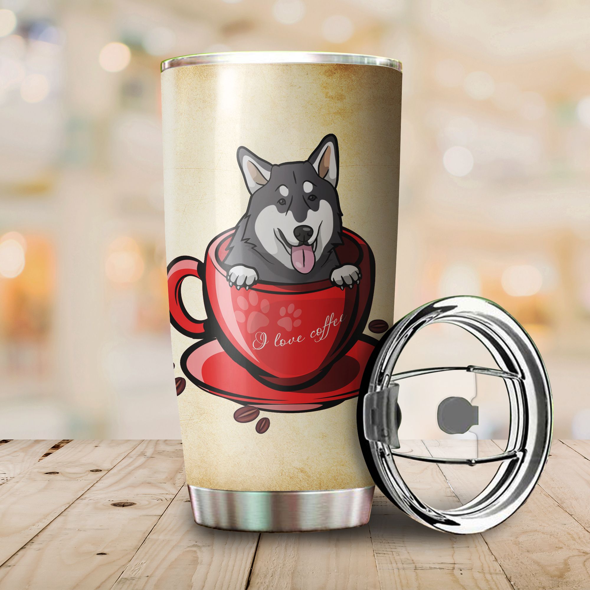 So whether you're looking to show off your own name or create a personalized gift for someone special, LateAndLow Store has got you covered. Start designing your own custom Girl really love coffe and Alaskan Malamute, stainless steel tumbler cup for dog lover, 20 oz print-on-demand product today, and let us bring your vision to life!