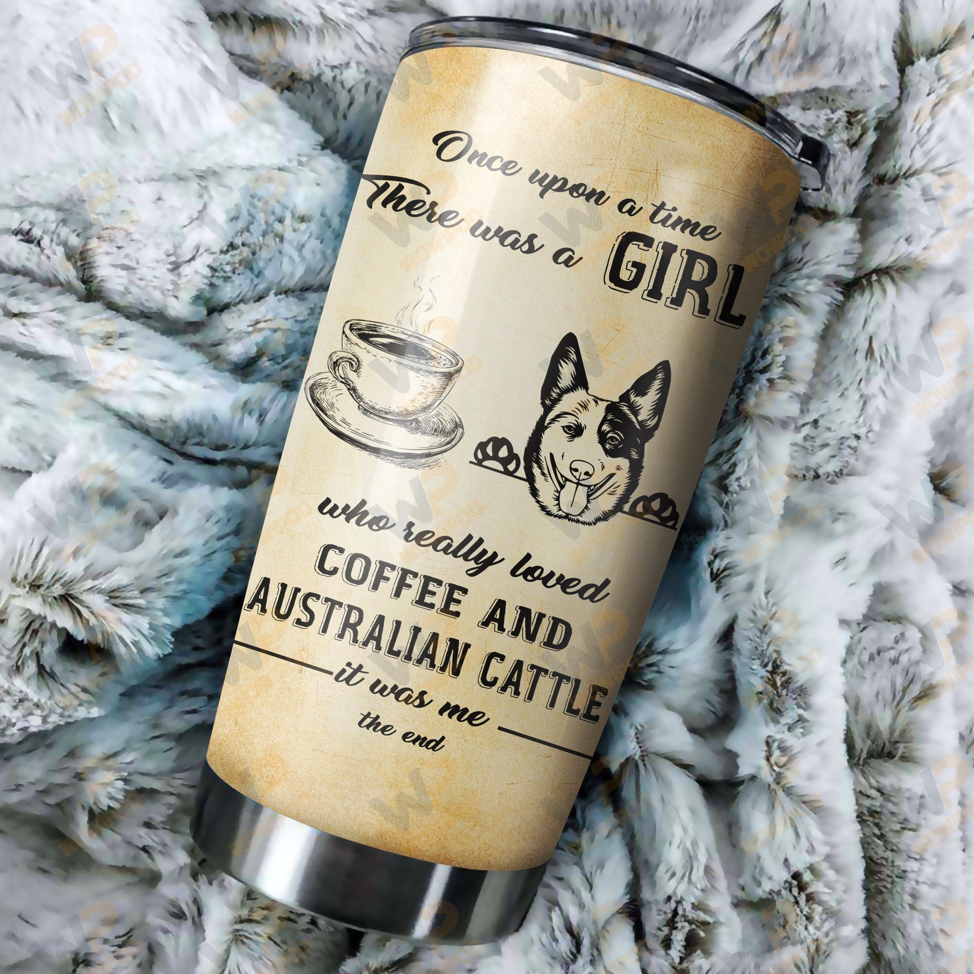 Girl really love coffe and Australian Cattle Dog, stainless steel tumbler cup for dog lover, 20 oz