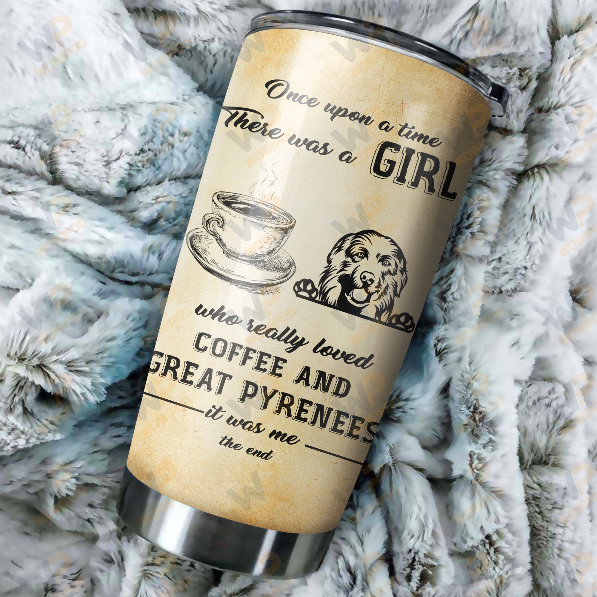 Girl really love coffe and Great Pyrenees, stainless steel tumbler cup for dog lover, 20 oz