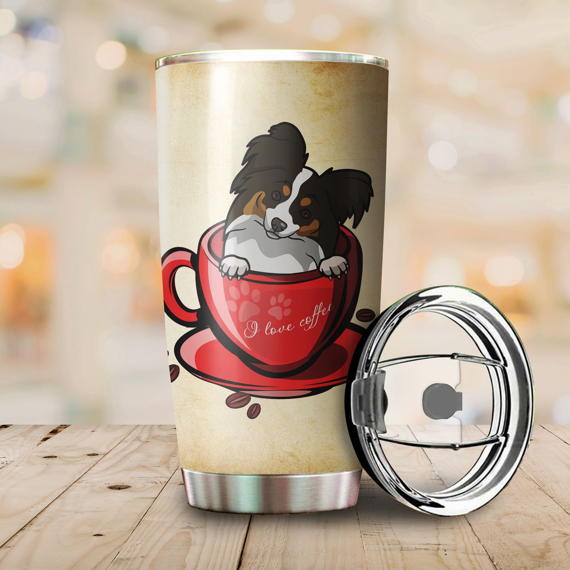 So whether you're looking to show off your own name or create a personalized gift for someone special, LateAndLow Store has got you covered. Start designing your own custom Girl really love coffe and Papillon, stainless steel tumbler cup for dog lover, 20 oz print-on-demand product today, and let us bring your vision to life!