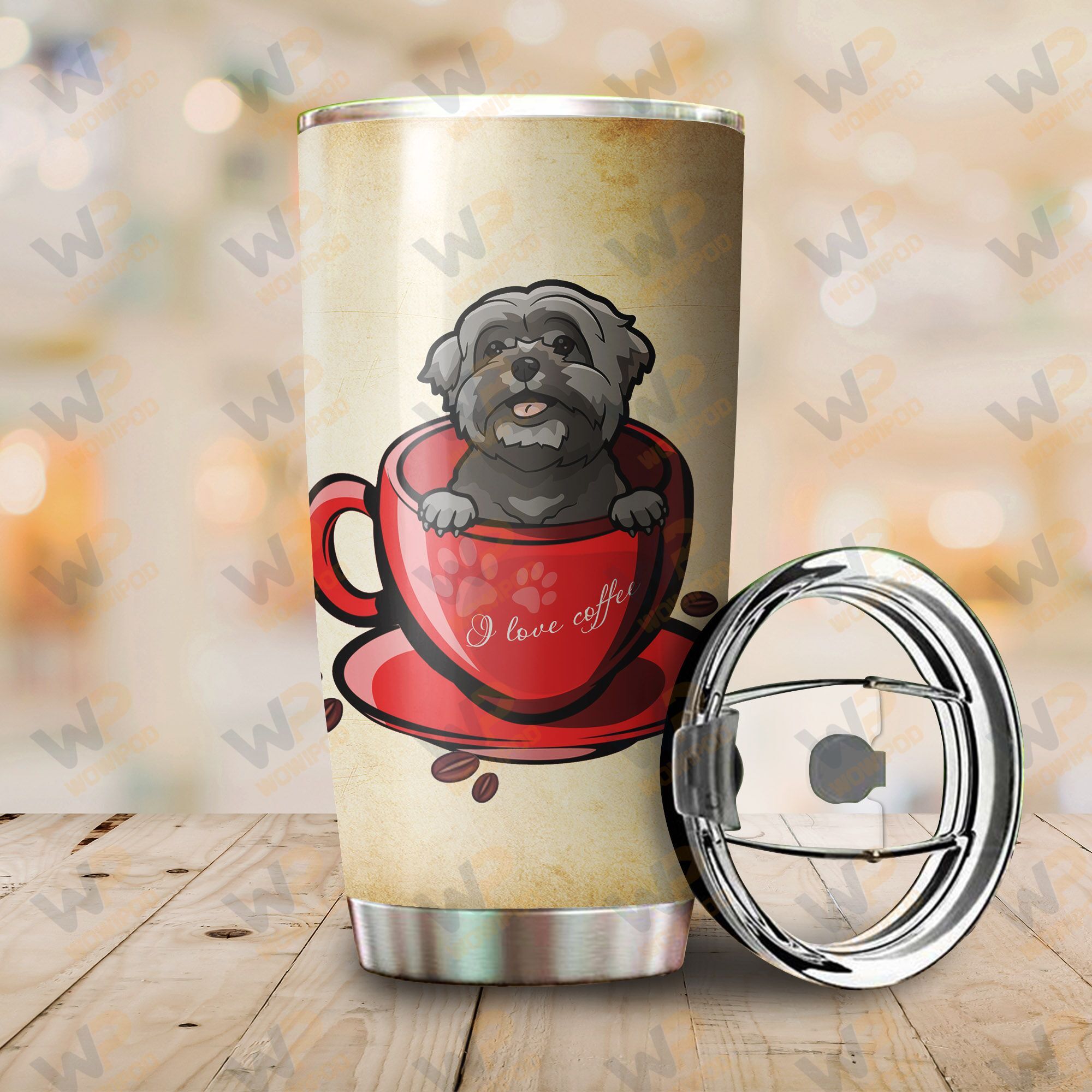 Girl really love coffe and Shih Tzu, stainless steel tumbler cup for dog lover, 20 oz